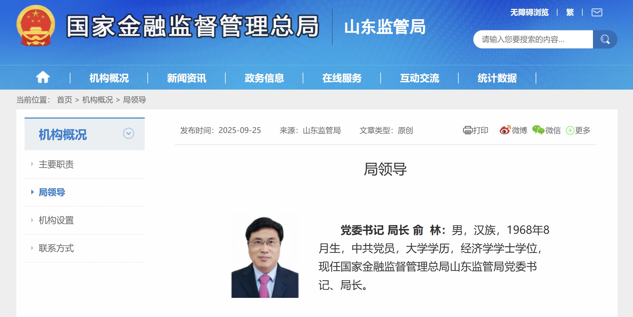 近日,国家金融监督管理总局山东监管局网站更新领导信息,俞林已任国家金融监督管理总局山东监管局党委书记、局长。公开资料显示,俞林,男,汉族,1968年8月生,中共党员,大学学历,经济学学士学位,此前担任国家金融监督管理总局辽宁监管局党委书记、局长。(大众新闻记者 刘兵 整合)