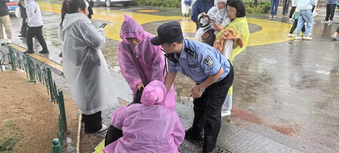 10月2日上午10时,青岛下起了大雨,青岛市公安局市南分局中山路派出所民警宋立伟、刘皓与辅警仲伟在栈桥西侧巡逻,全力保障假日期间景区的秩序与游客安全。此时,一名群众匆匆赶来求助,称六浴沙滩上有位年轻女孩情绪崩溃,情况让人担心。