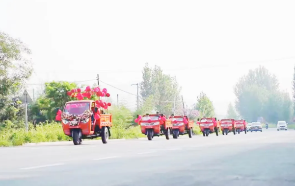 “我小时候就坐过五征牌农用三轮车,有很多欢乐的回忆。后来我媳妇坐过几次,也对三轮车产生了很大的兴趣。”新郎崔维华说,在商量婚礼计划时,两人心有灵犀地想到了使用家乡企业生产的农用三轮车当婚车,办一场别开生面的婚礼。