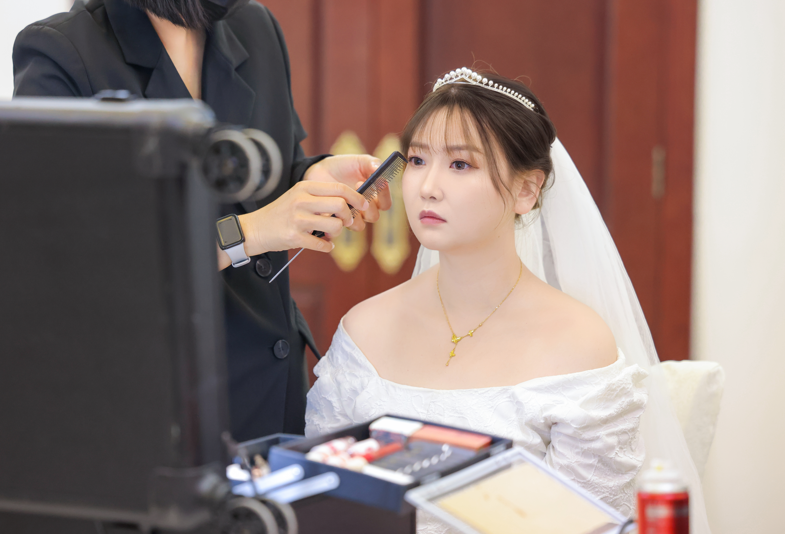 新娘对镜梳妆,静候爱人