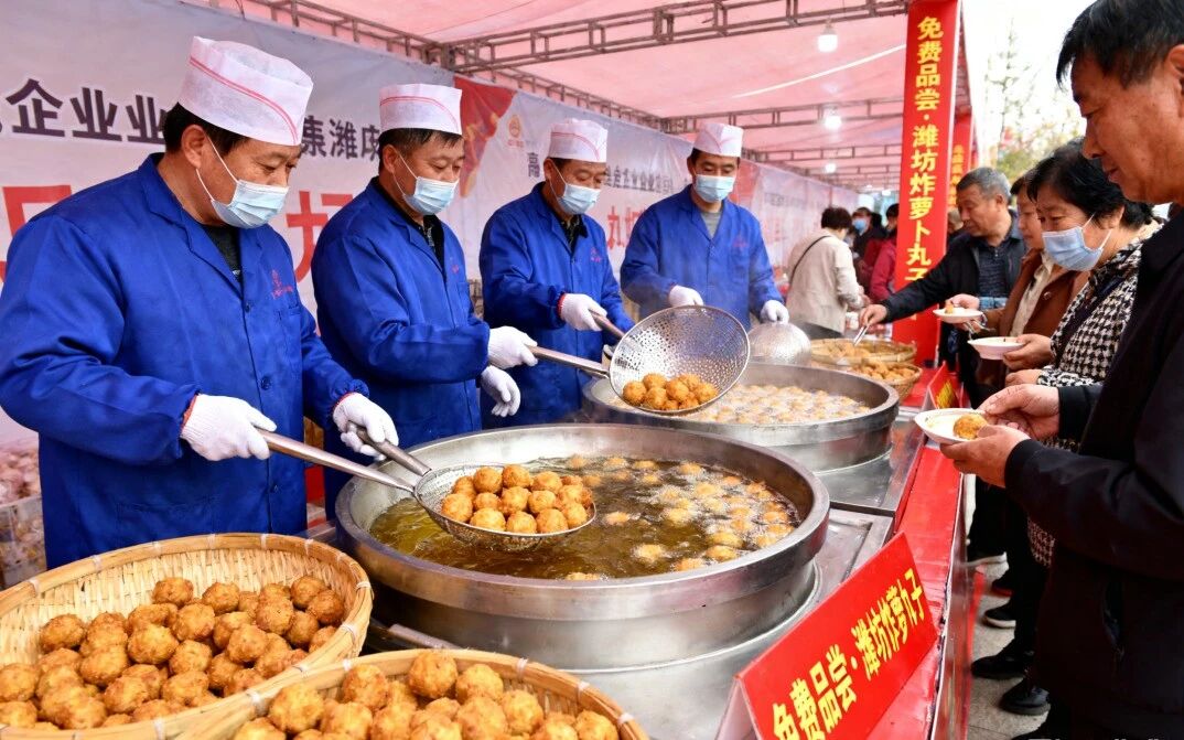 万人同吃萝卜丸子。组织本地知名萝卜丸子制作加工企业现场制作,邀请市民、游客免费品尝潍坊特色美食。