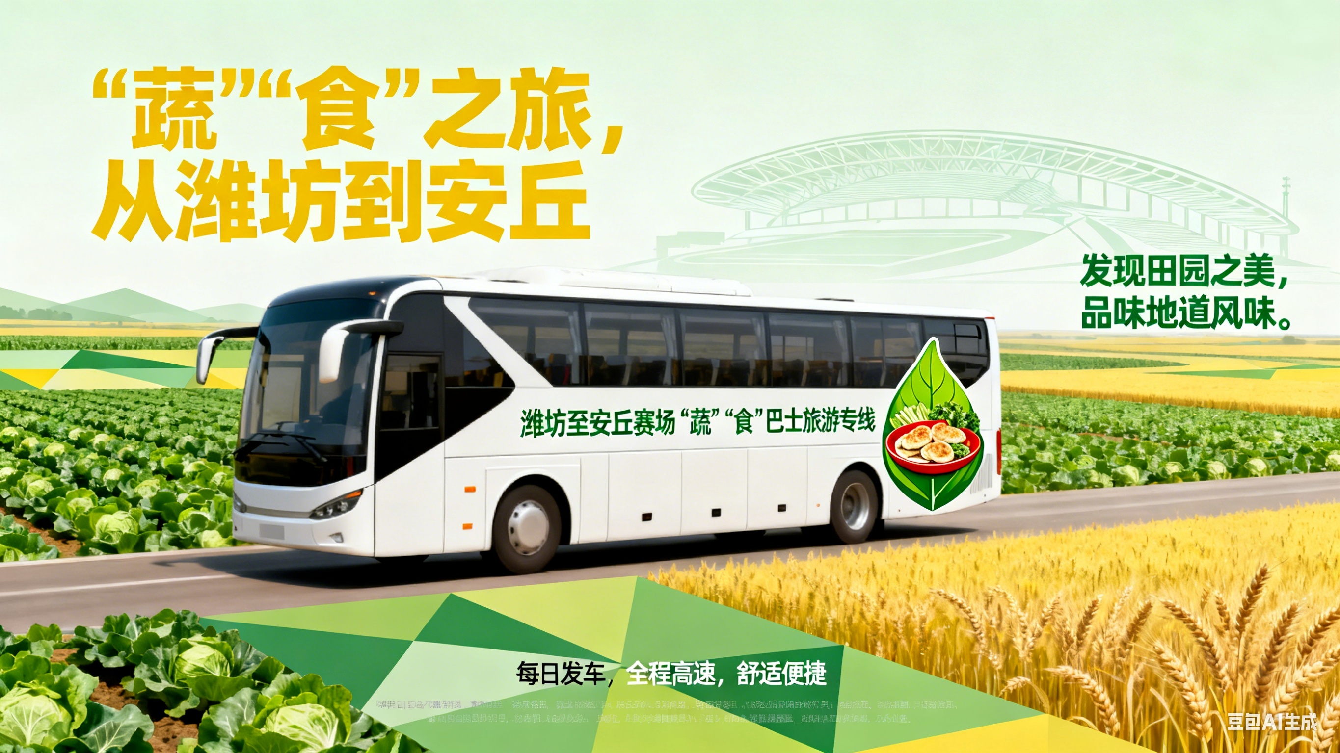 开通潍坊到安丘赛场“蔬”“食”巴士,10月7日起每天上午从潍坊市政府大楼西府佑巷发车,从安丘市青云山市民广场返回,全程免费,市民游客可以“舒服”又“巴适”的畅游美食争霸赛和相关景区。