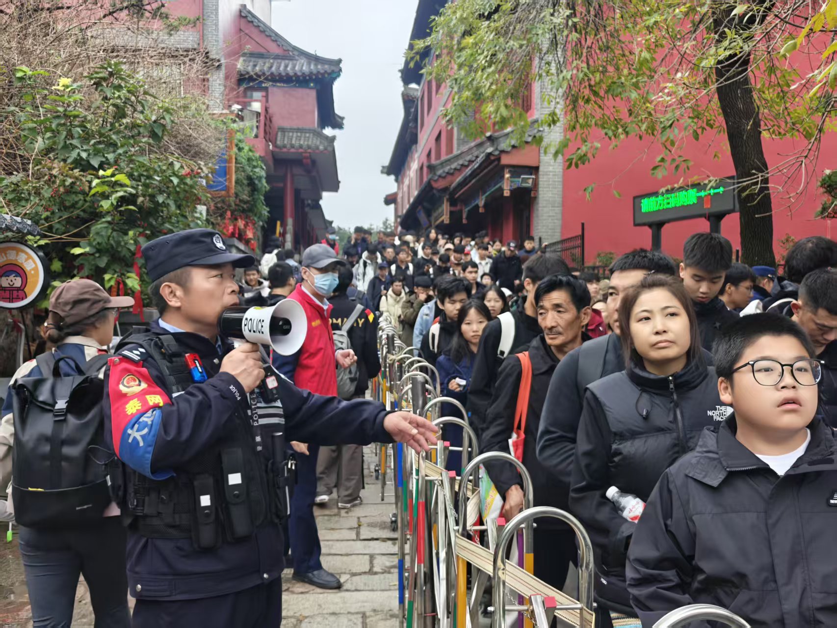 在德州乐陵影视城、乐陵拾光沉浸式街区等景点,随处可见公安民警的身影,让每天近3万人的大客流有了平安保障。面对求助,乐陵民警一帧一帧查看监控,帮助游客找回手机;遇到行动不便的老年游客,民警真情“摆渡”解决难题。执勤民警用每天超过2万步的足迹守护美景,用坚守筑起一道安全屏障,用真情守护游客的平安喜乐。