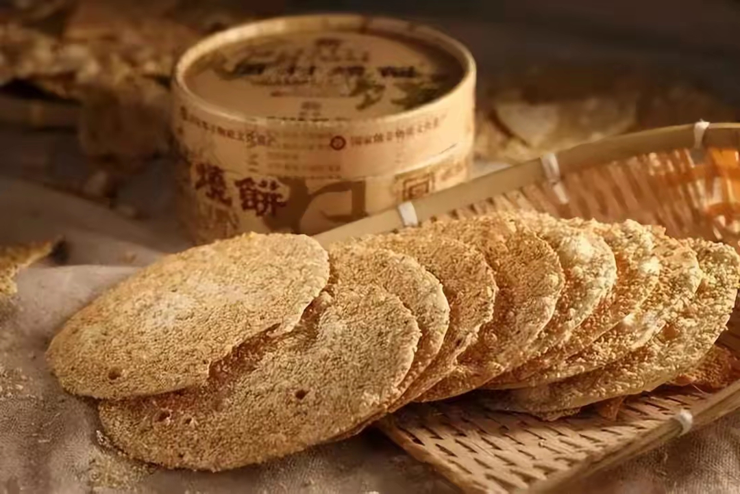清朝光绪六年(1880年),山东桓台县(隶属淄博)人郭云龙在周村挂起“聚合斋”招牌。一次烤饼时,他发现饼面鼓起的气泡薄脆焦香,芝麻黏附更密。于是,他反复试验,终将厚饼蜕变成“薄似杨叶,落地即碎”的珍品。
