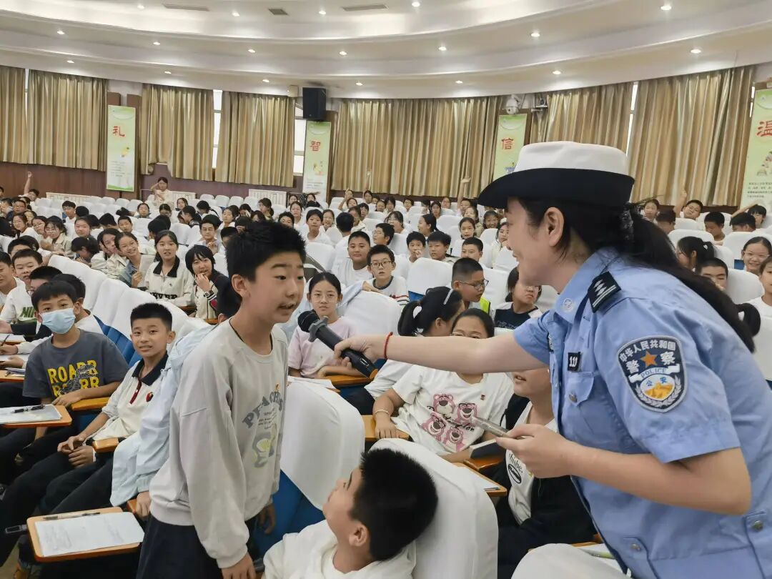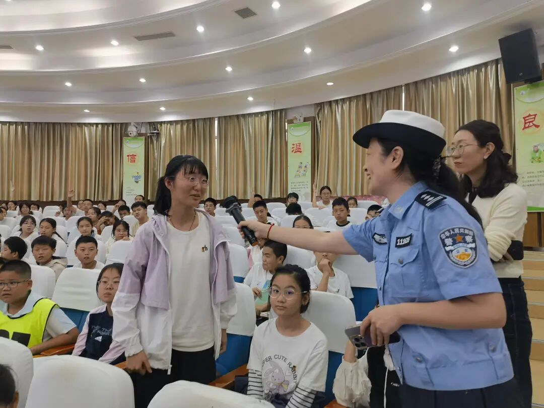 活动中,民警史晓媛通过播放学生交通安全警示教育片,用通俗易懂的语言进行案例分析及互动问答,重点围绕“过马路走斑马线”“不闯红灯”“骑车不逆行”等基础规则,剖析随意横穿马路、互相追逐打闹等行为的危害性。
