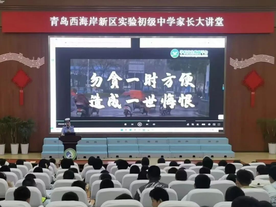 为进一步提升中小学生交通安全意识和自我保护能力,筑牢校园交通安全防线,10月9日,青岛市黄岛区交管大队一中队民警走进辖区实验中学,给同学们上了一堂生动且有意义的交通安全宣讲活动。