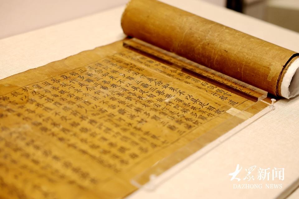 中唐时期的吐蕃文《大乘无量寿宗要经》也很有意思。佛教自西而来,却在中原与吐蕃落地生根,写本成了文明互鉴的物证。吐蕃统治敦煌时期,开展抄经活动仅有短短十四年,因此,这件文物能与今人相遇堪称奇迹。