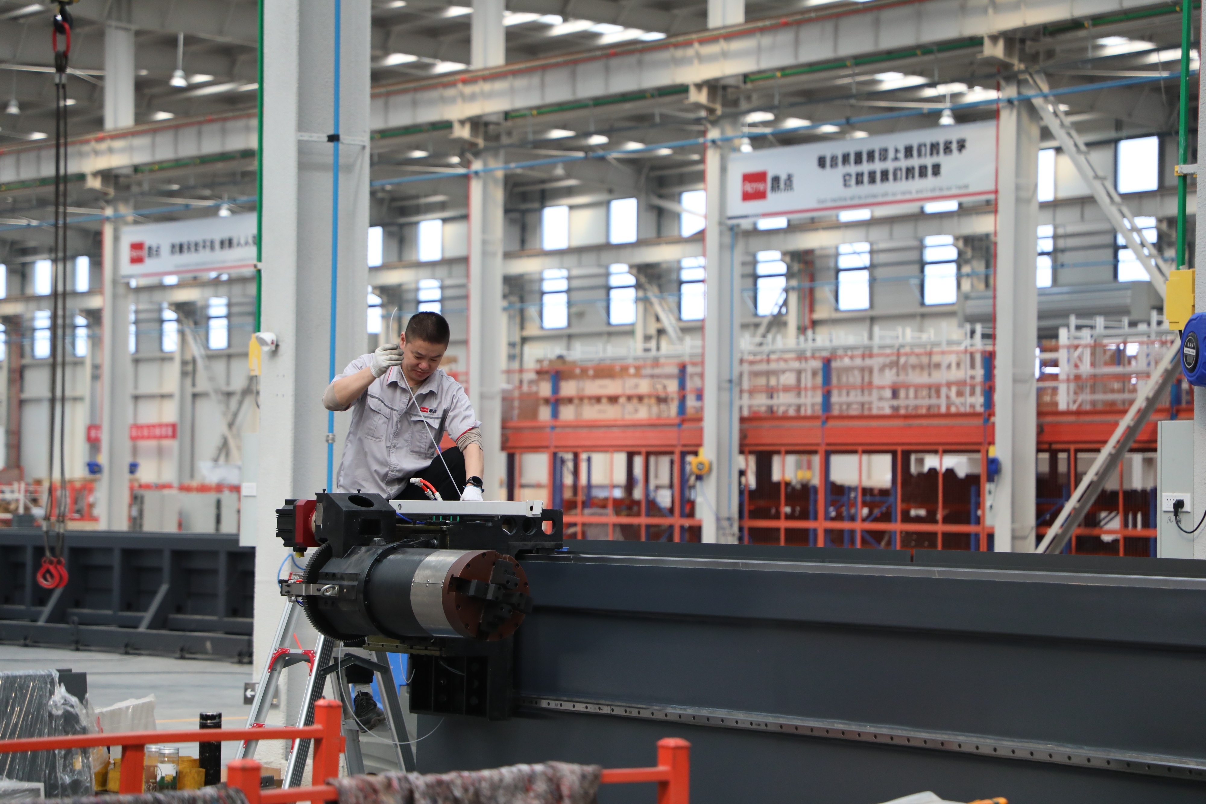 其实,工厂搬迁对鼎点数控来说并非首次。2023年,在起步区协调下,公司便从黄河大道旁的小厂房搬迁至挨着黄河大堤的厂区,产值较2022年翻一倍有余。这一次的搬迁,让鼎点数控的工厂焕然一新,但仍受空间限制,没能达到现代化智能工厂的标准。