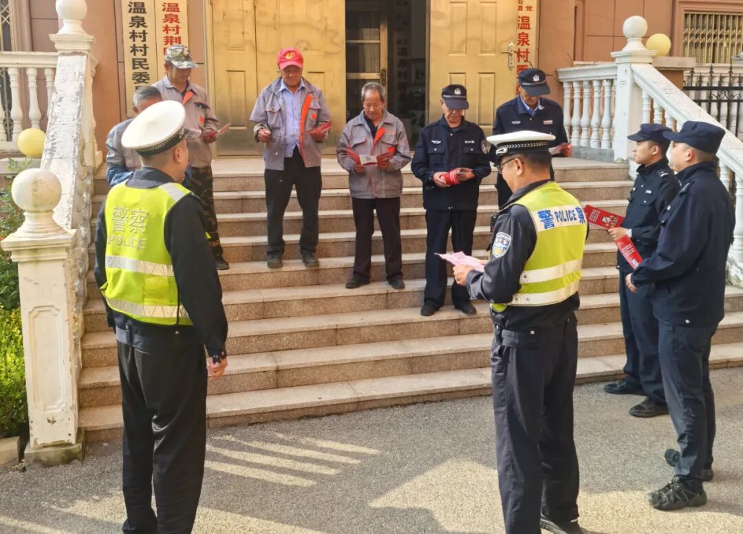 2025年10月15日,温泉交警中队与温泉派出所联合走进荆疃社区开展普法宣教活动。这一联合宣教方式,也让社区工作者产生了疑惑,都笑着问道:“怎么这次宣传派出所和交警一起来了?”“所队联合”宣讲队员解释道:“这是当前正在推行的‘交所融合’一体化宣教模式,通过整合派出所、交警中队宣防资源,实现‘一次宣教、多重效果’,更好地守护群众生命财产安全。”普法活动中,结合本地实际,联合宣讲典型交通违法、电信诈骗案示例,同时向群众递上《秋收农忙安全莫忘宣传册》《全民反诈识骗防骗宣传册》,以“看得见、摸得着、听得懂”的形式,让交通安全、防诈骗常识走进群众心中,全力筑牢安全线,守护钱袋子。