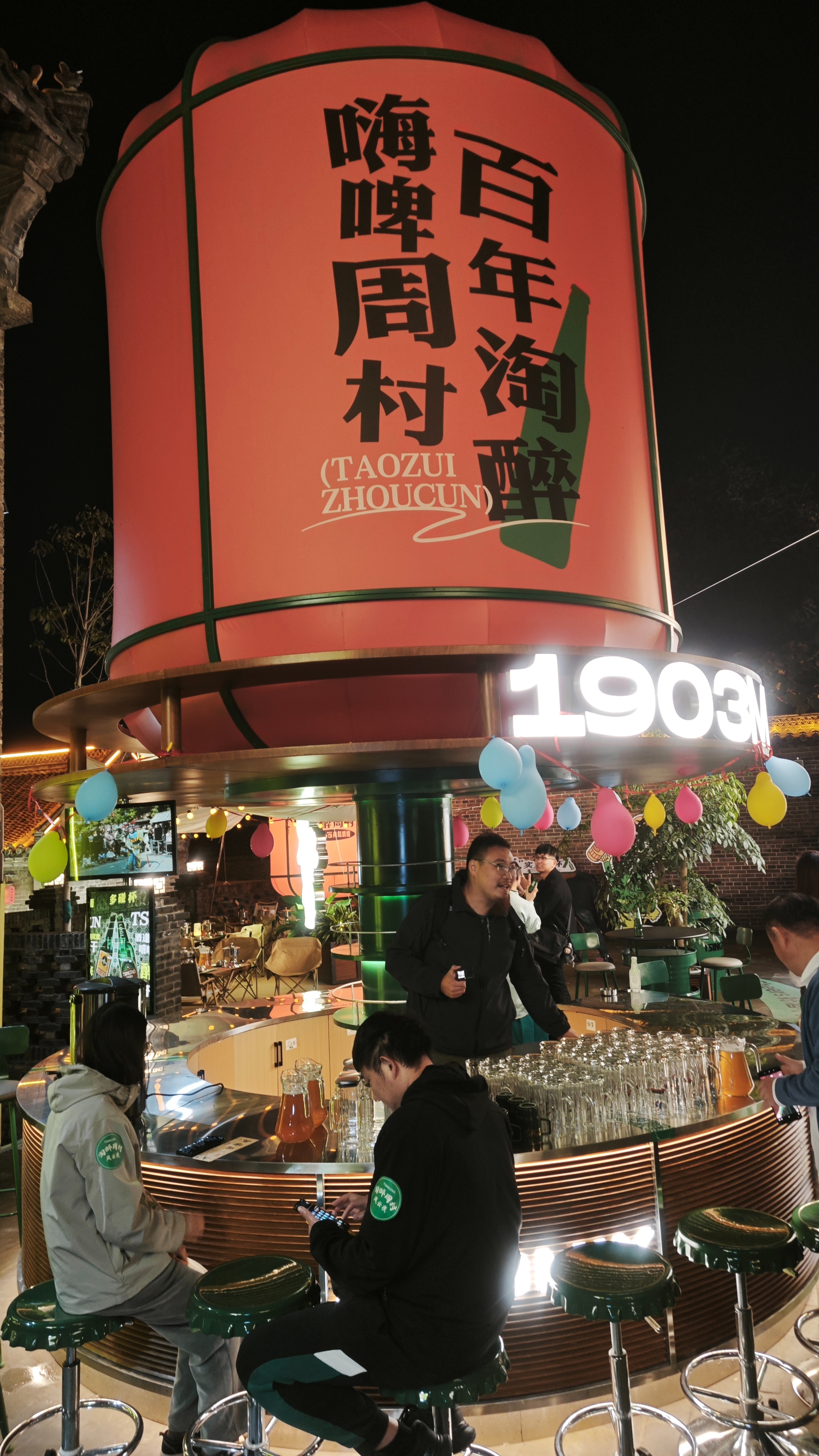 10月18日晚,周村古商城灯火璀璨,民国风情的背景音乐在青砖灰瓦间流淌,暖黄灯光勾勒出百年建筑的古朴轮廓——“淘醉周村•风云夜”活动在此拉开帷幕,最引人注目的莫过于新亮相的1903青岛酒馆。这场融合历史底蕴与现代潮流的盛会,为这座千年商埠注入了鲜活活力。