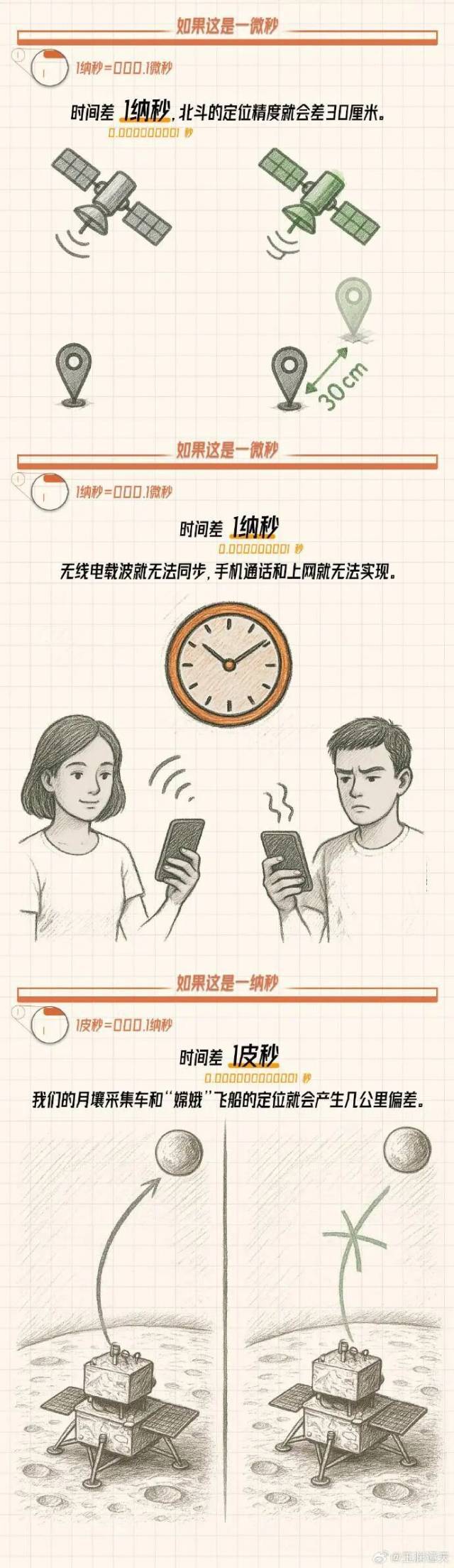 时间差一皮秒,也就是10万亿分之一秒,月壤采集车和嫦娥飞船的定位就会产生几公里的偏差,可能造成“嫦娥”无法成功返回。