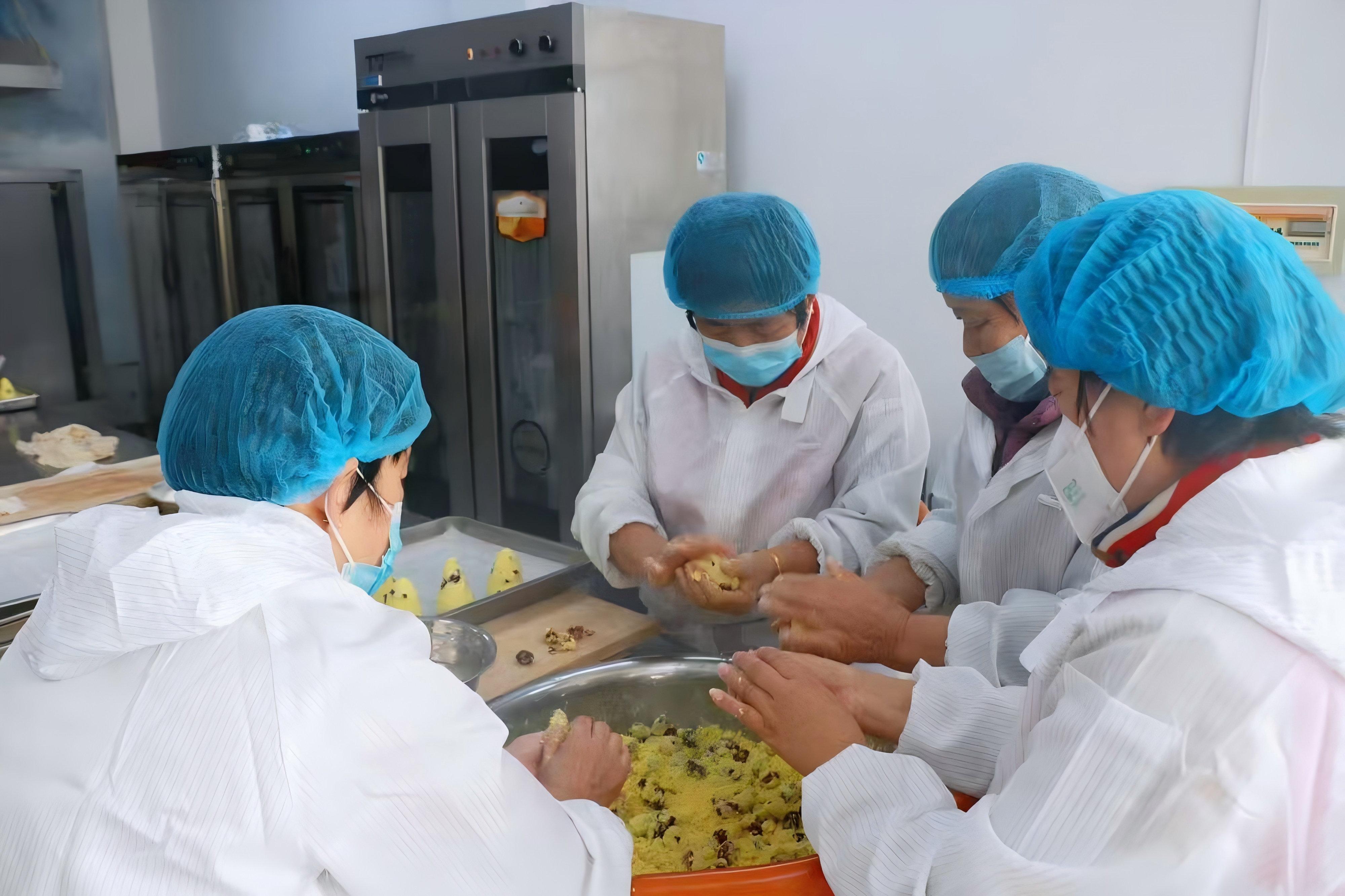 “咱的馒头都是零添加,风味足,放到哪里都是响当当,妈妈们又都揣着手艺,就卖这个准没错。”社区第一书记程涛和社区党委书记张麦荣一商量,很快锁定了本地的“资源禀赋”所在。社区党委投入资金又腾出场地,程涛找到曾有开办超市经验的郭盼作为带头人,带着7个“姐姐”,风风火火支起蒸笼,干起蒸坊。
