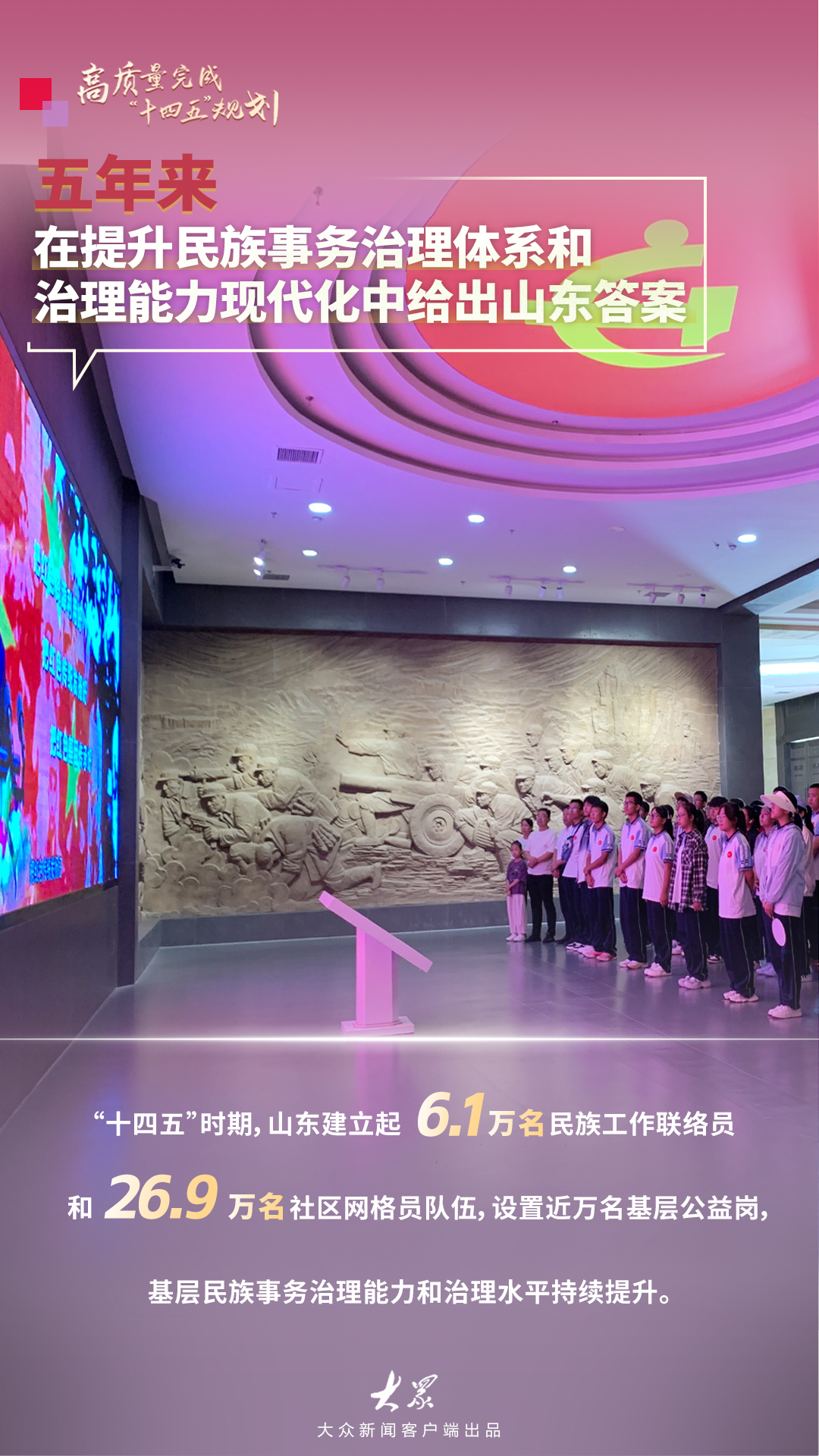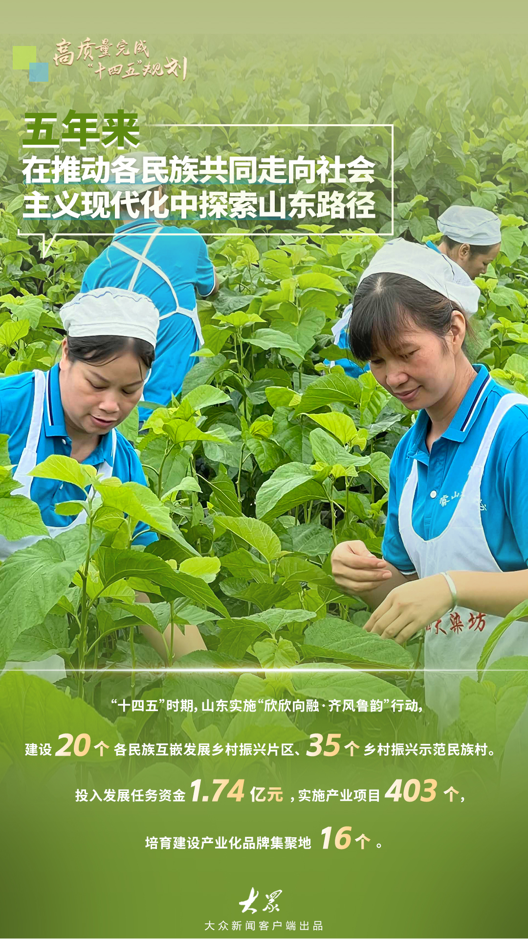 “十四五”时期山东培育壮大403个民族乡村产业项目山东发布 | 2025-10-21 10:13:50 原创杨烨莹 崔晗 来源:大众新闻微信扫码扫码下载客户端10月21日上午,山东省人民政府新闻办公室举行“高质量完成‘十四五’规划”系列主题新闻发布会,邀请山东省民族宗教事务委员会主要负责同志等介绍“十四五”时期铸牢中华民族共同体意识山东实践。五年来铸牢中华民族共同体意识有哪些“山东经验”?一起来看看~(大众新闻记者 杨烨莹 崔晗 策划 陈巨慧)责任编辑:张誉耀