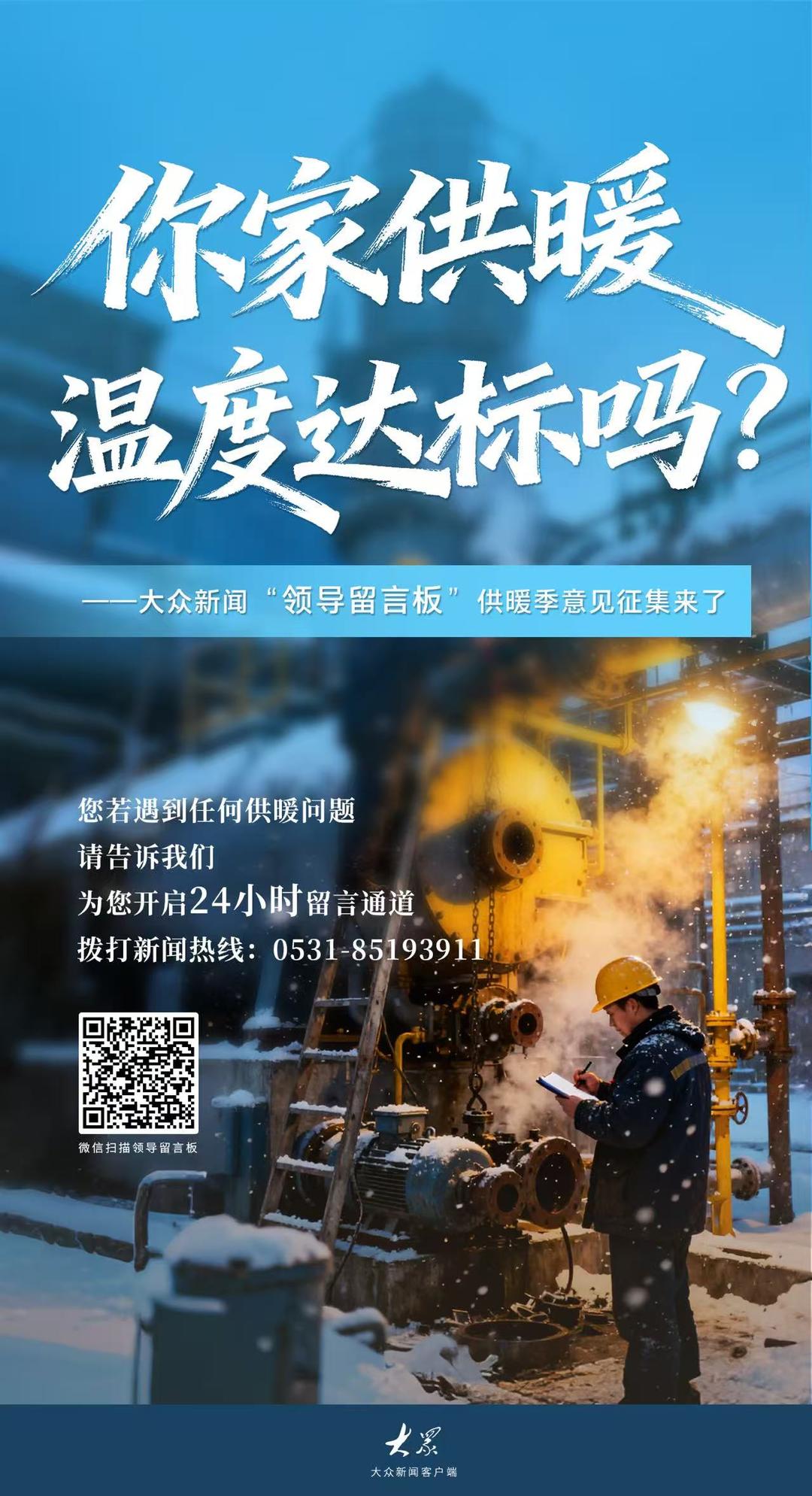 全省供暖季即将开启,为及时了解群众供暖诉求,推动供暖服务优化升级,大众新闻“领导留言板”现面向全省公众开展供暖季意见征集行动,广泛倾听民声、汇聚民意,切实提升供暖服务水平,保障全省群众温暖过冬。