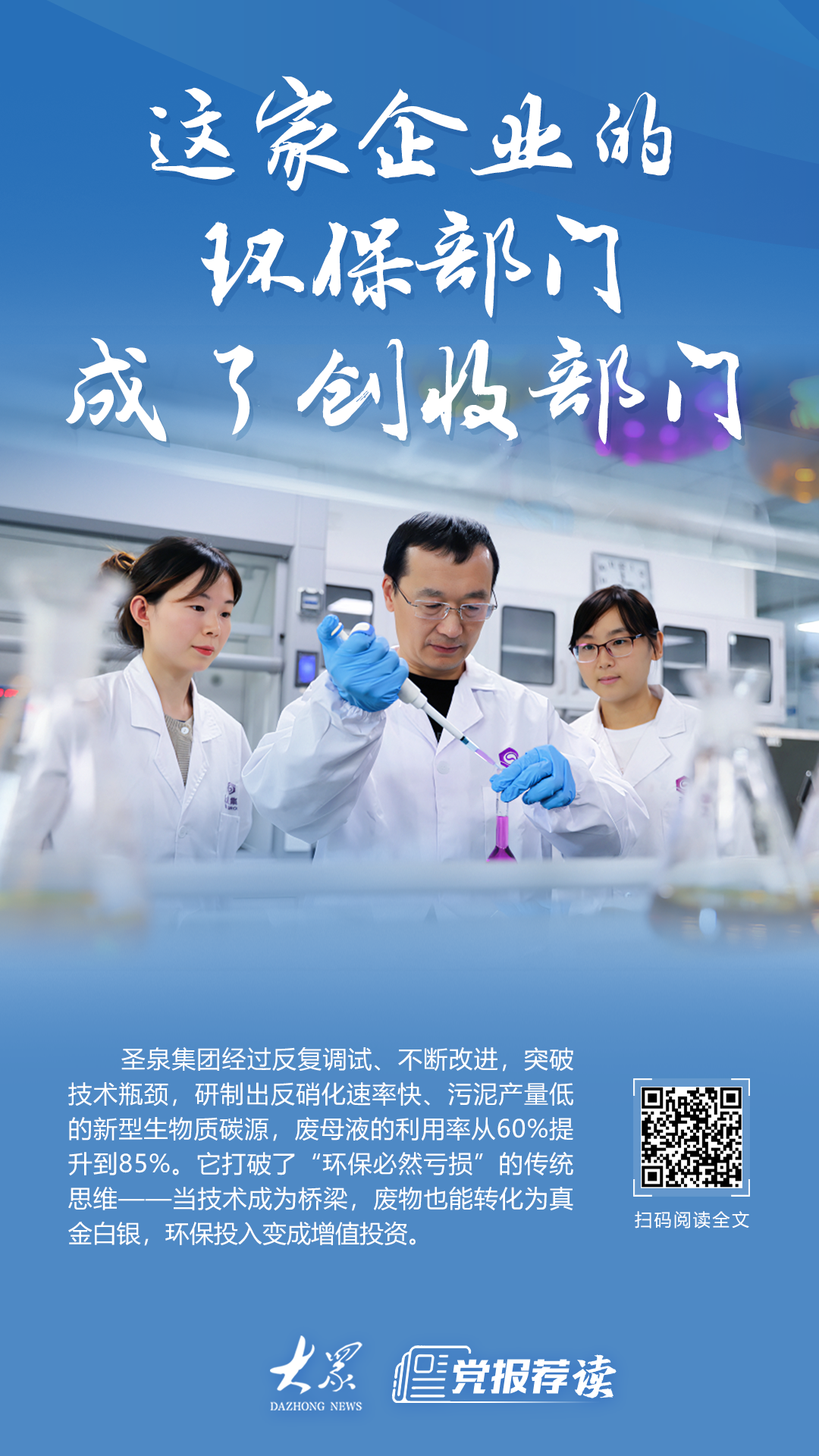 “这里面流动的,曾经是负担,如今却是宝藏。”站在厂区高处,济南圣泉集团股份有限公司环保部总经理柴磊,指着一条通往光大水务的管道说。