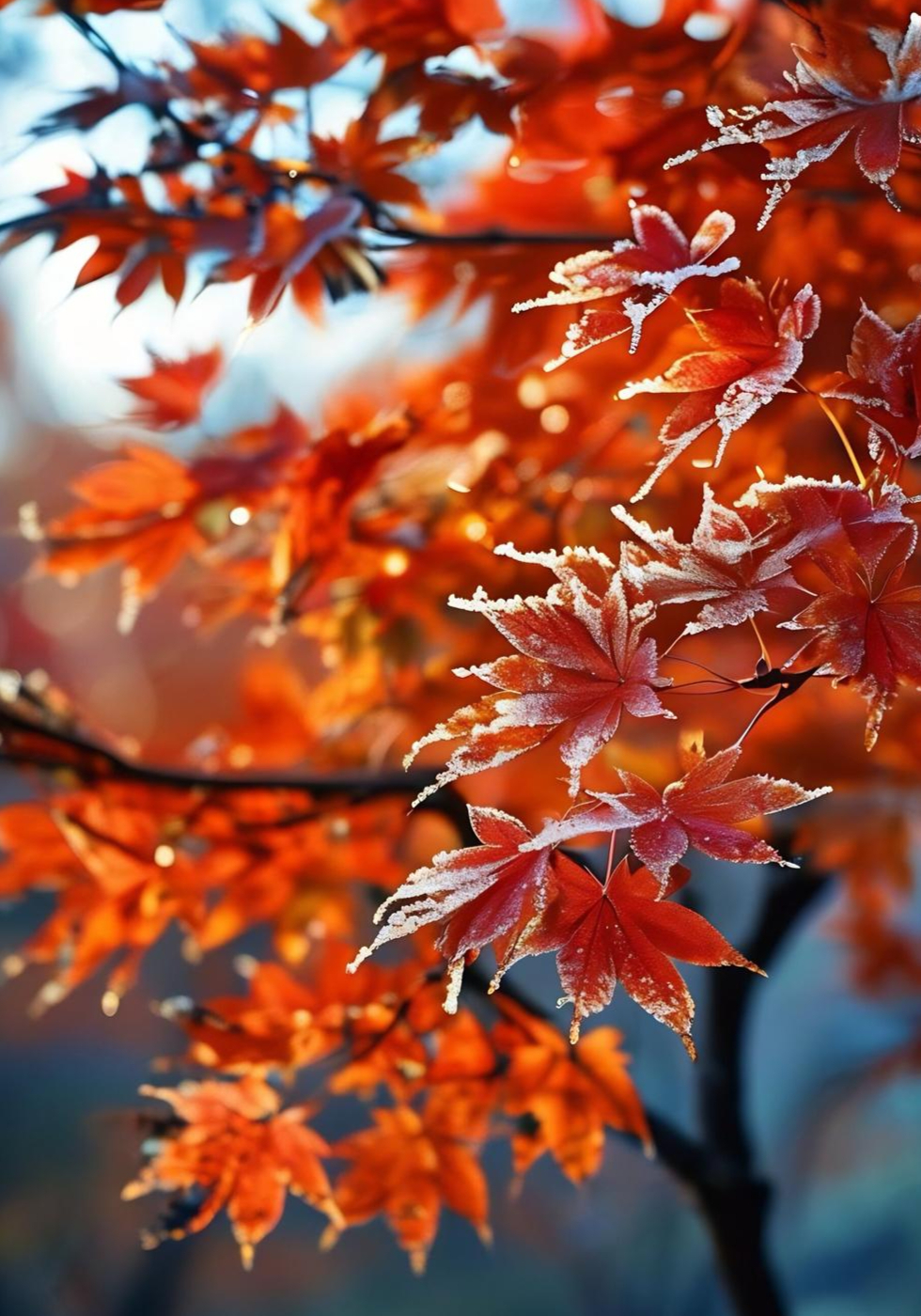 对比二十四节气中清明、谷雨的纯粹生机,同为自然现象的霜降节气充满了辩证、智慧和张力。它完美融合了草木凋零的肃杀和炽烈红叶的淬炼,是清冷与丰盈的矛盾统一体,是秋季的终结又是冬季的序曲,它终结草木生机,也预示着来年的新生。这种对立交织的特质和“向死而生”的自然奇观,在其他节气中极为少见。