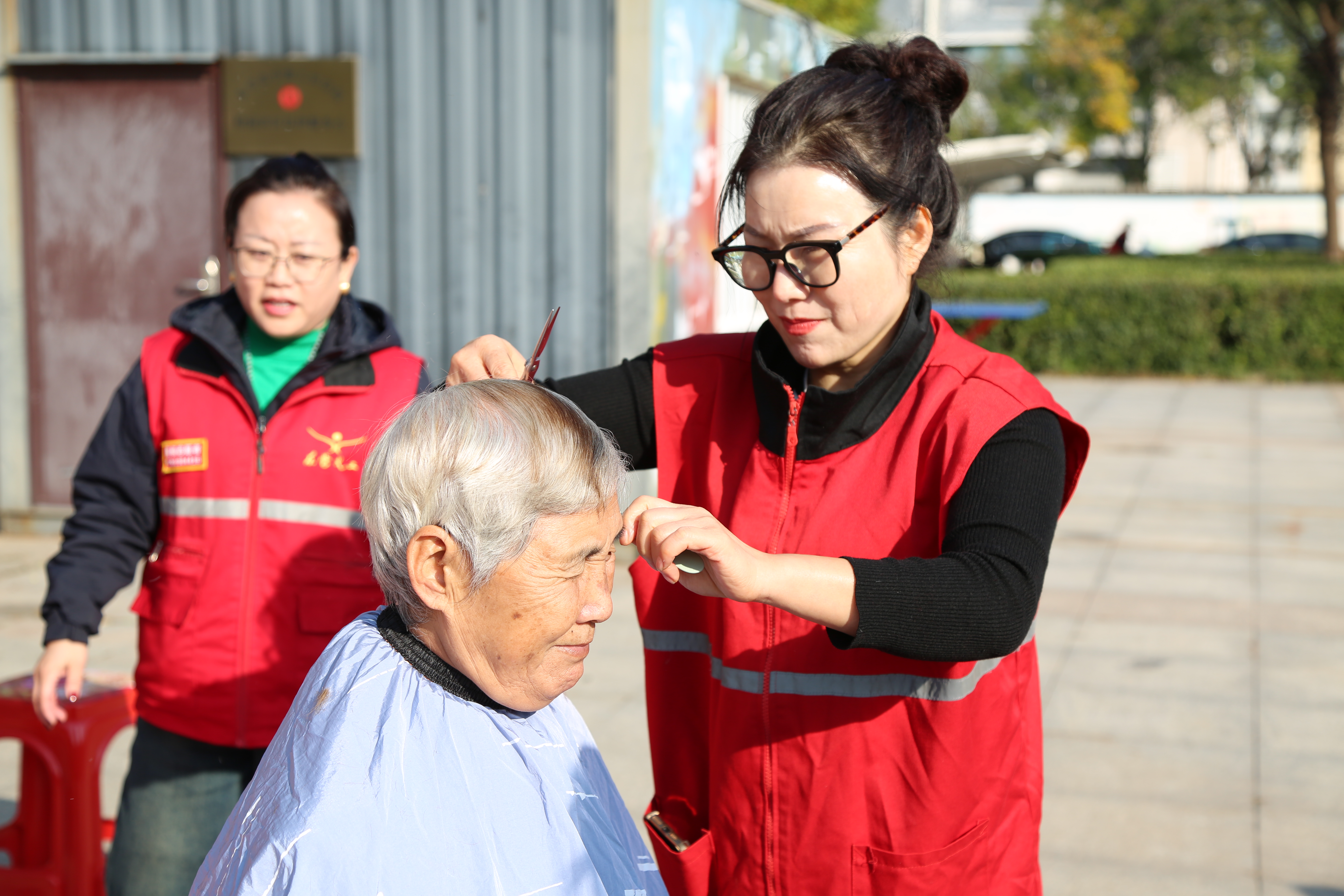 最聚人气的当属免费理发区。理发志愿者们技艺娴熟、态度热情,一边与老人们唠着家常,一边根据大家的需求修剪出利落的发型,“理发师的手艺真好,剪完头发感觉整个人都精神了,太谢谢你们了!”居民们纷纷为这场活动点赞。