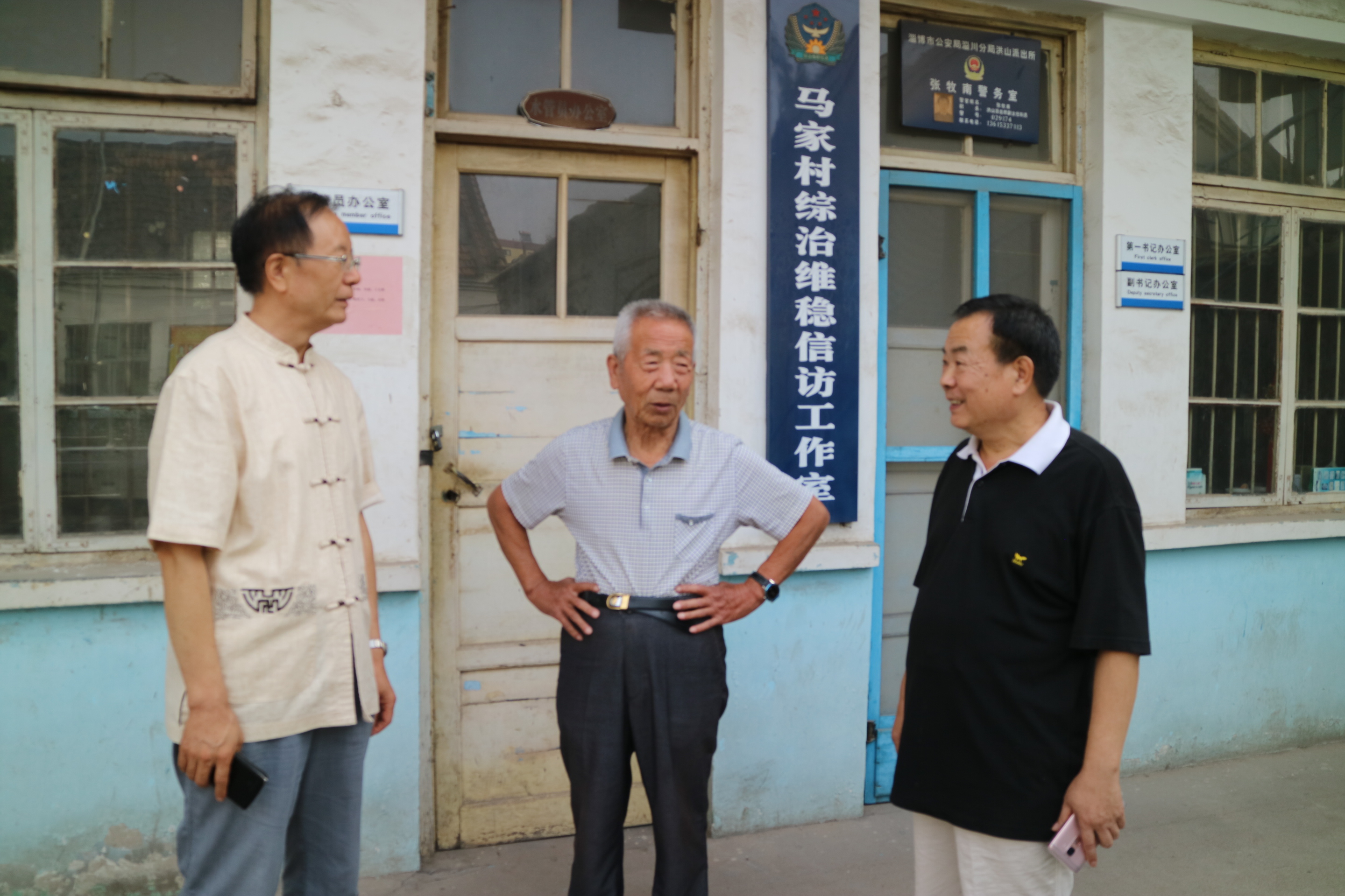 采访太河水库建设者罗村营营长王锡亮(中)。