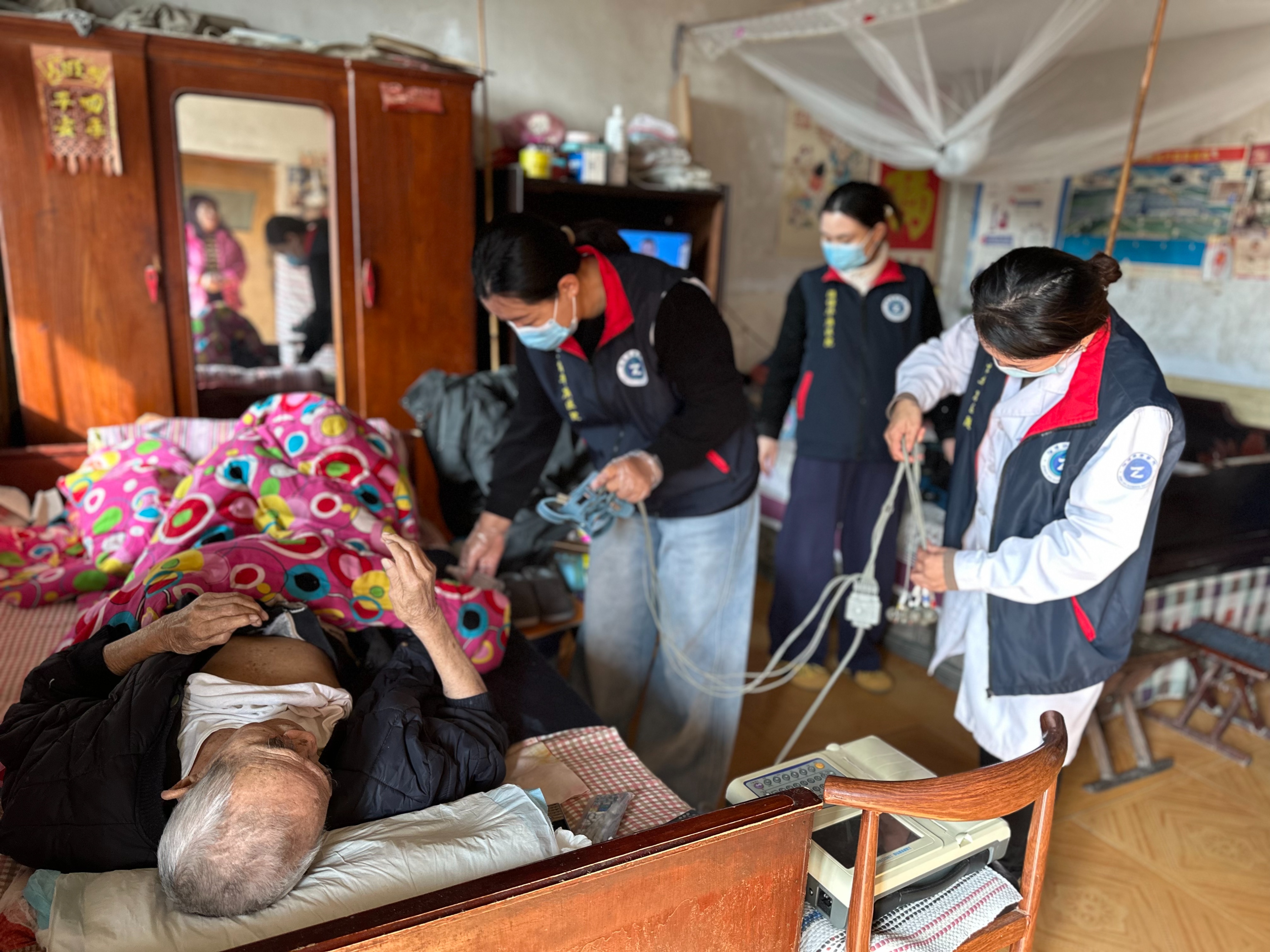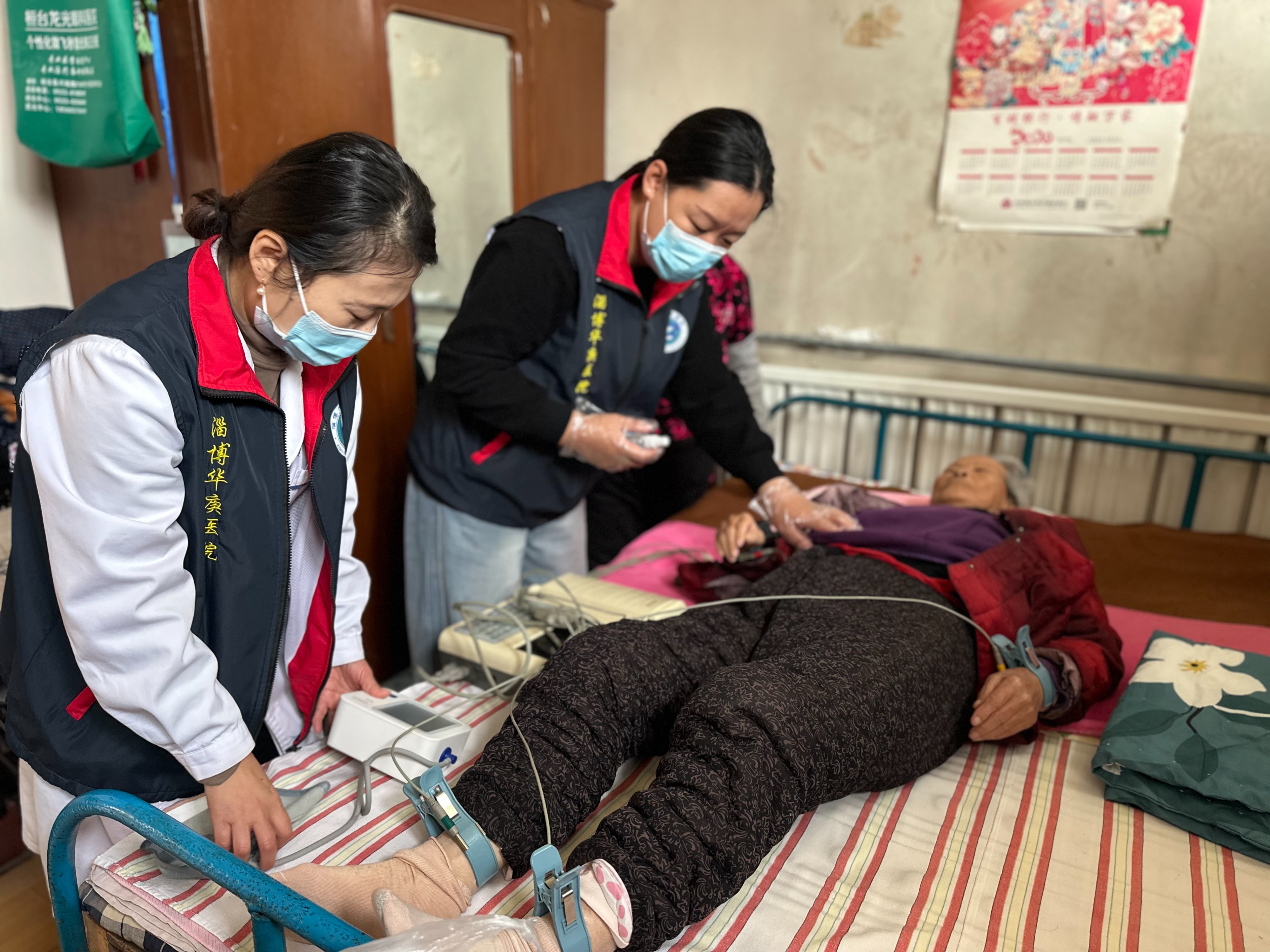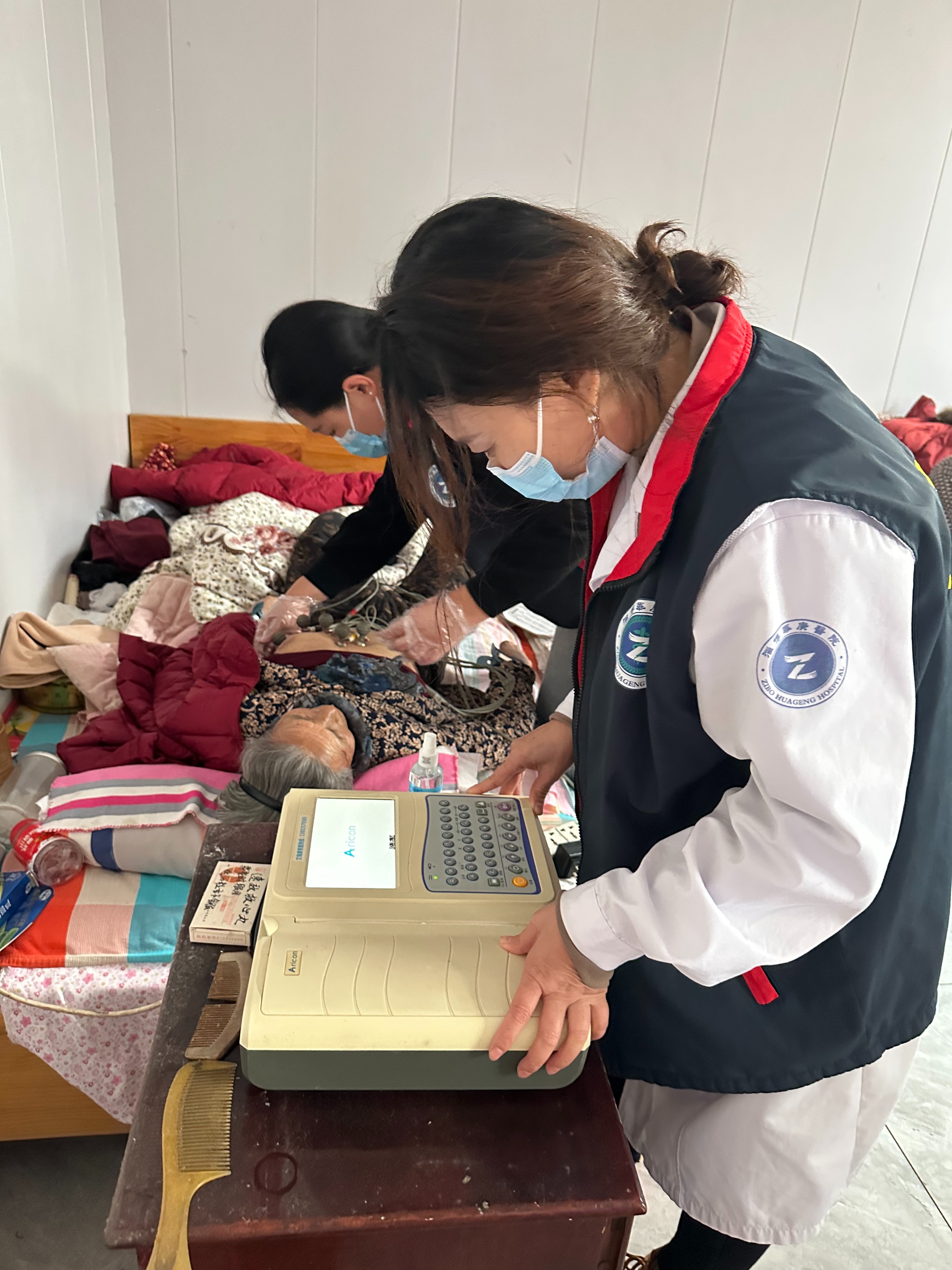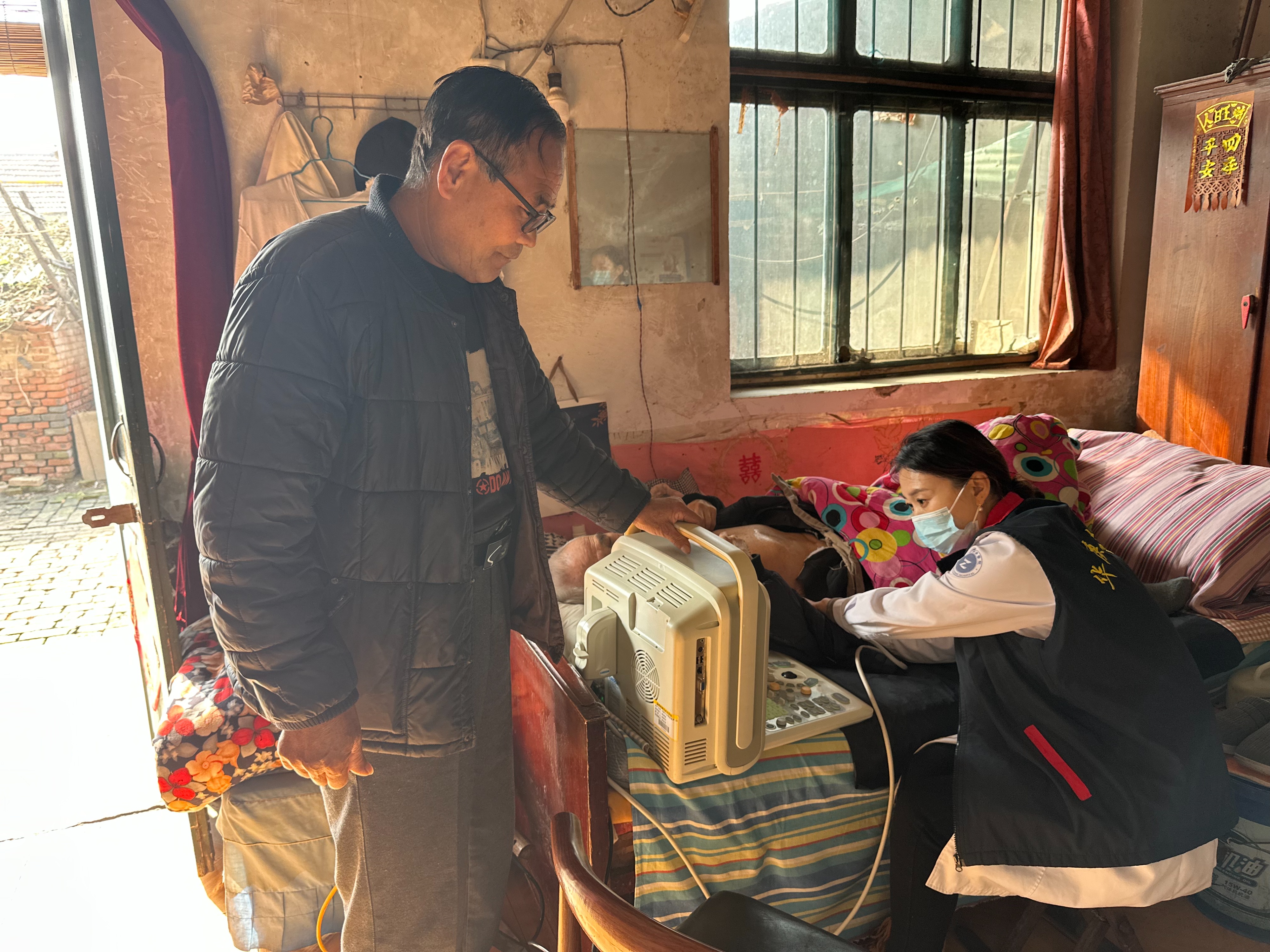 村里几位年迈的老人因疾病卧床或行动困难,子女虽悉心照料,但外出体检始终是个难题。为此,淄博高新华庚医院在开展常规义诊的同时,特意组织医护小队,携带血压计、血糖仪、便携心电图机和彩超机,挨家挨户上门服务。