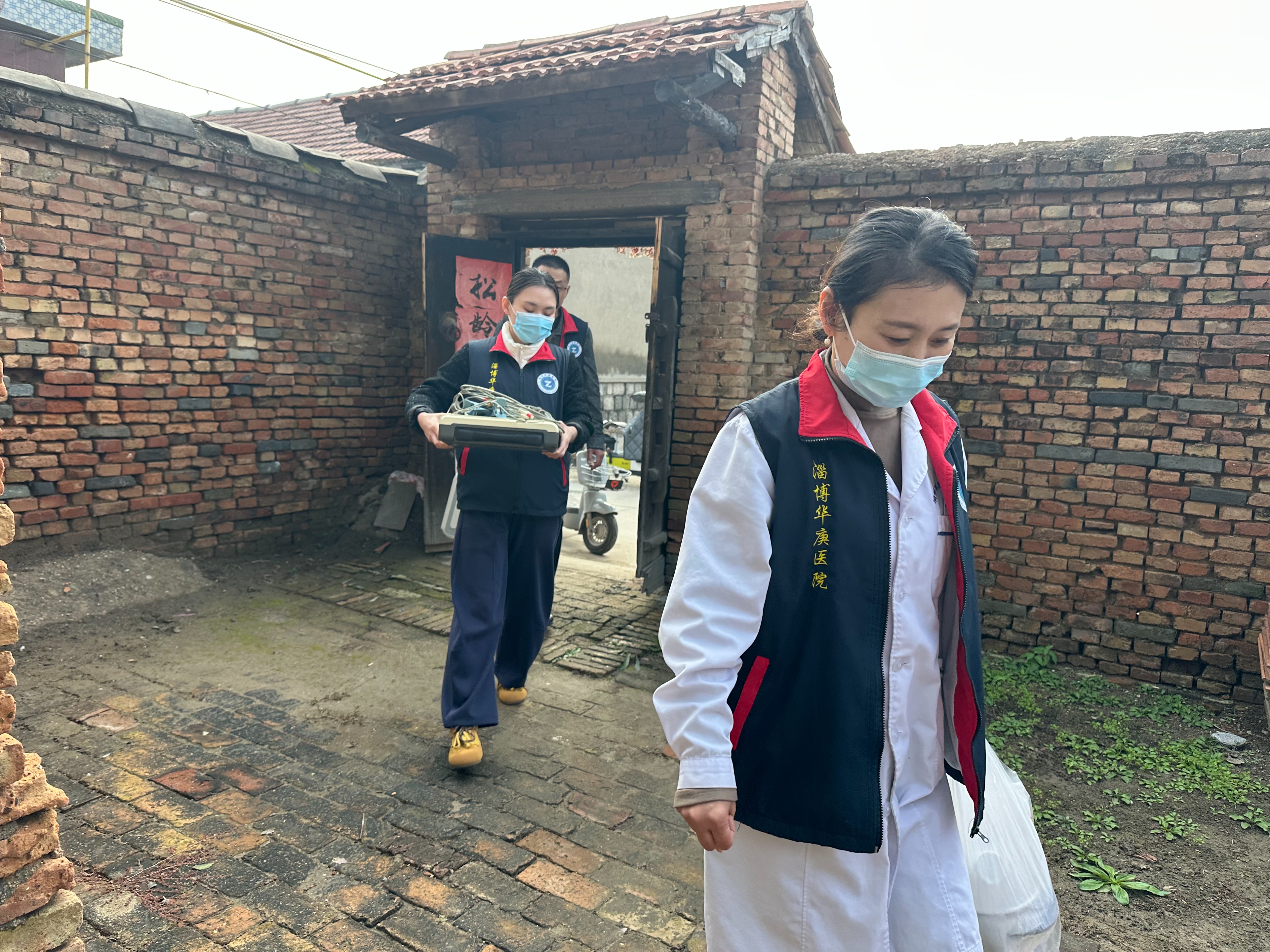 义诊过程中,一位村民因腿疼行走困难,淄博高新华庚医院的宋振峰院长当场诊断后,带他到村卫生室,顺利完成了一个小手术。