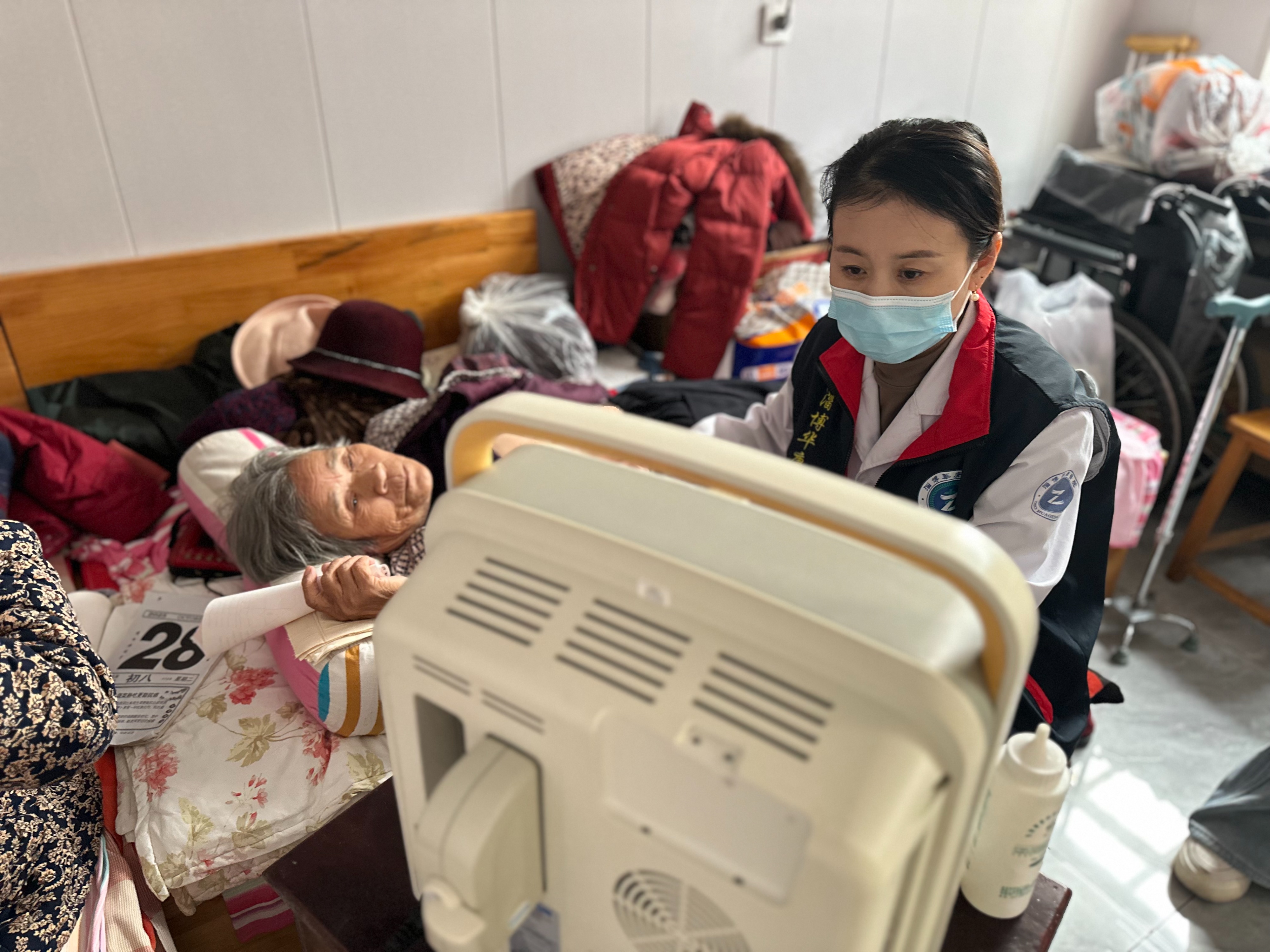 医护人员同时为两位老人完成检查,发现巩向叶血压偏高,叮嘱她要勤测血压,必要时需药物干预;巩芳云则有些心律不齐,一旁的儿媳立刻拿出手机,认真记下医嘱和照料注意事项。