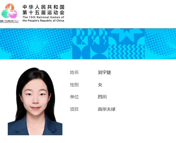 刘宇婕出现在第十五届全运会高尔夫女子团体赛四川队报名名单里