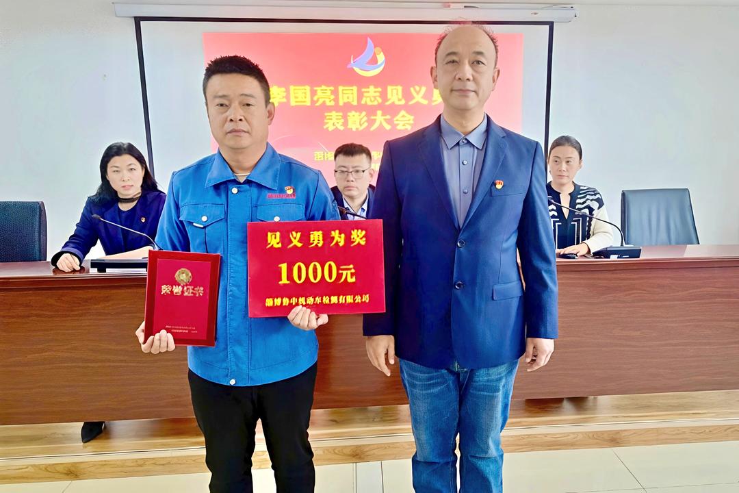 10月29日下午,淄博鲁中机动车检测有限公司召开表彰大会,对李国亮见义勇为的行为进行表彰和奖励与,倡导员工勇担国企责任,积极弘扬正能量,全体职工共同见证了这一光荣时刻。
