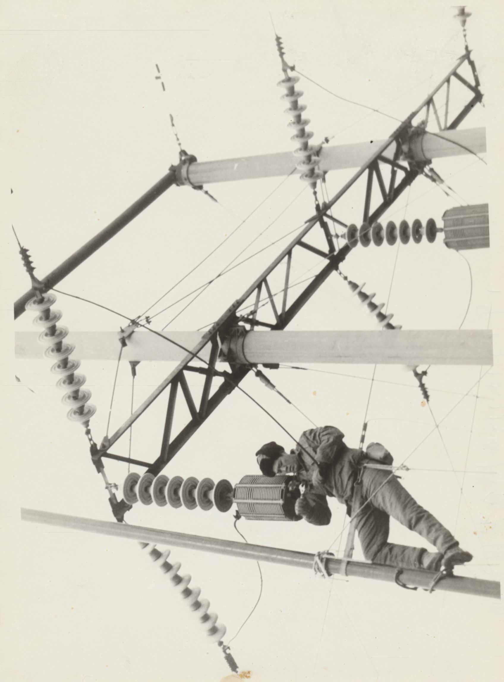 这是个很费力气的活,整个身体全靠一支手的力量拉住。张克京至今仍记得,师傅们爬一根电杆约需二十分钟的时间,人到杆顶已经喘的不行。“而且非常危险,三角板吊在空中摇来晃去的,有的师傅就因中途体力不支或一时没有抓稳绳子掉下来摔伤过,有的上到半途时下面的三角板滑了下去,只能等着工友一步一步的给送上来。”回忆过去的操作方式,张克京摇摇头。