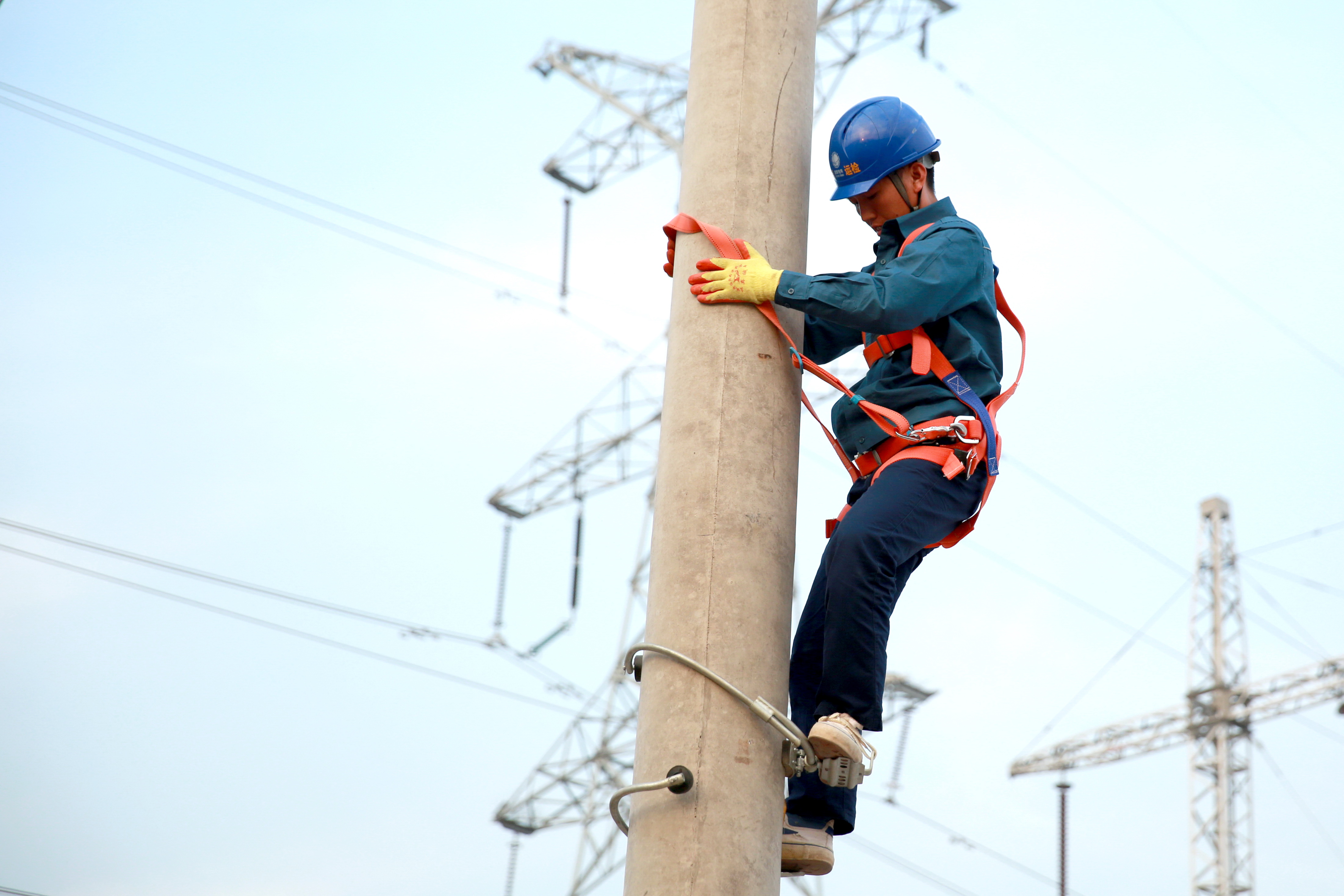 如何凭人力攀上一根20米高的水泥电线杆作业?