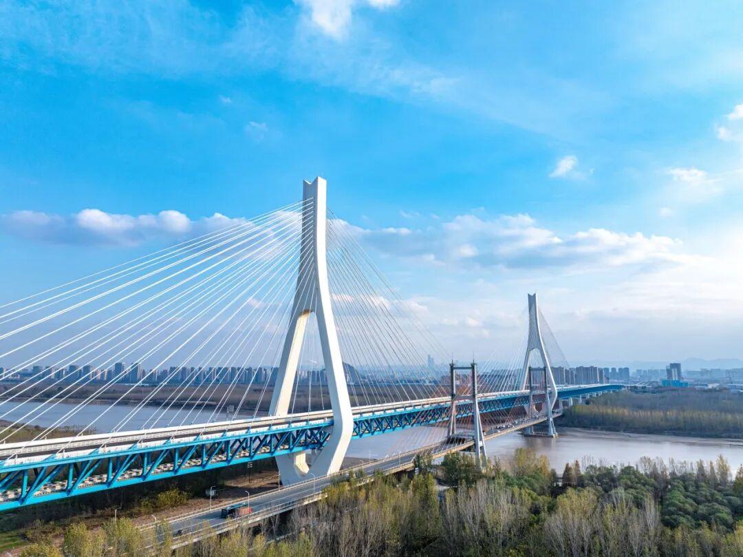 G104京岚线济南黄河公路大桥扩建工程由济南城市建设集团投资建设,项目新建了黄河上跨径最大、钢桥总长最长的公轨分层合建钢桁架斜拉桥,改建了四层多功能零点枢纽立交,完善了济南市“携河”发展的交通体系。在桥梁建设、新材料应用、精细化及数智化管控等方面取得了显著成效。