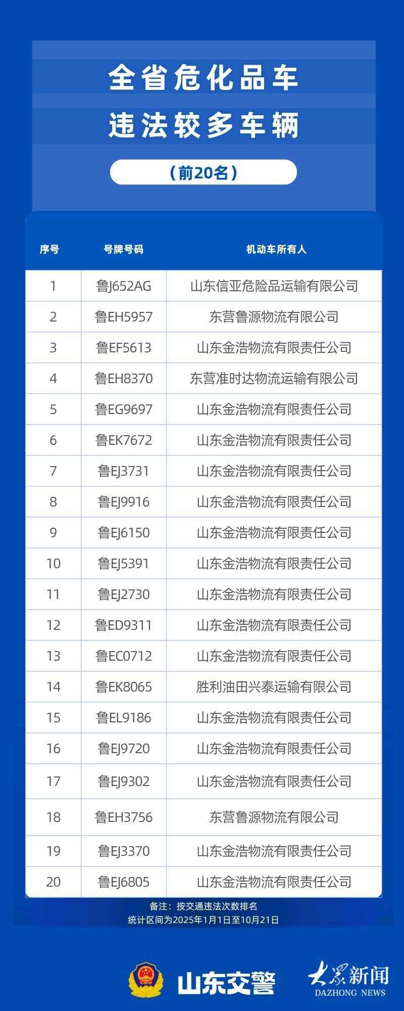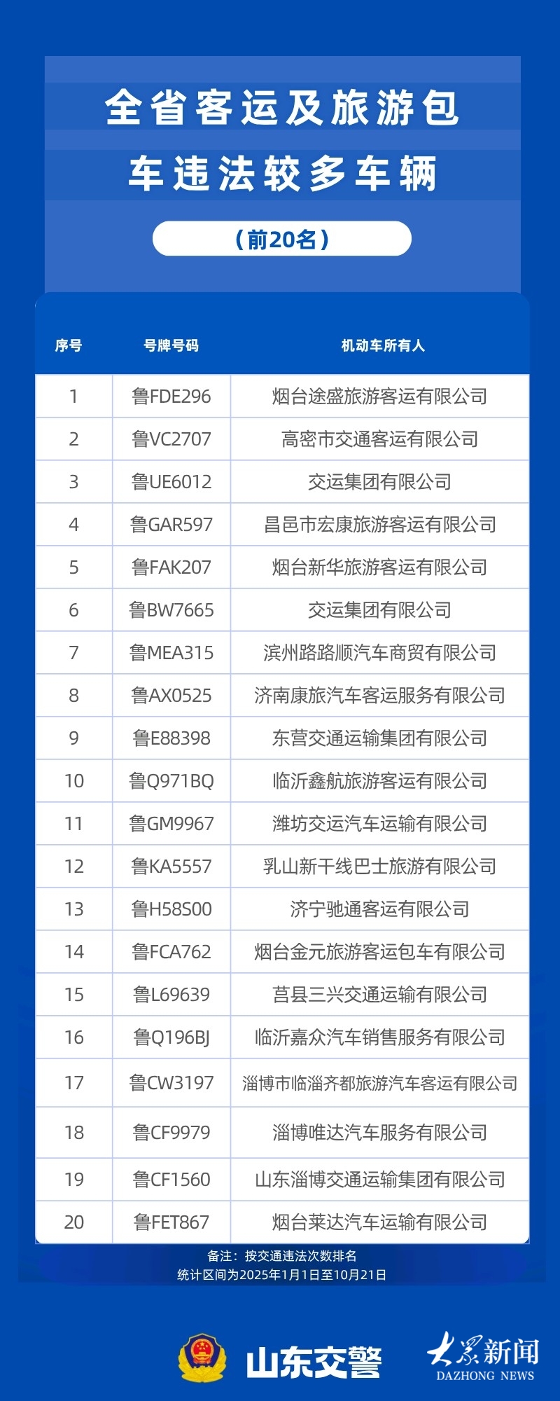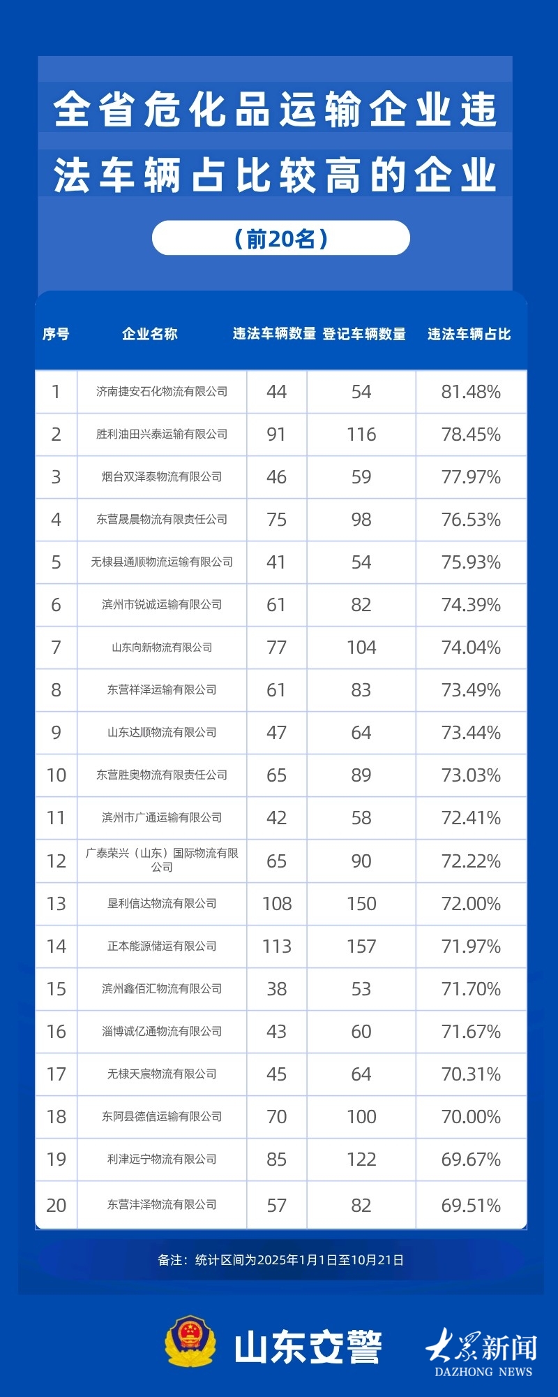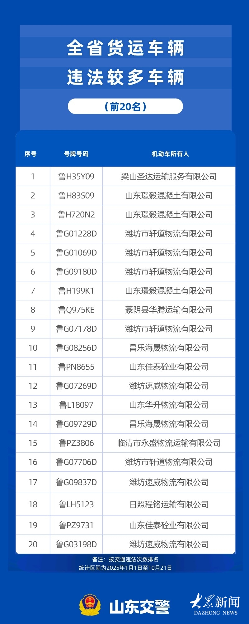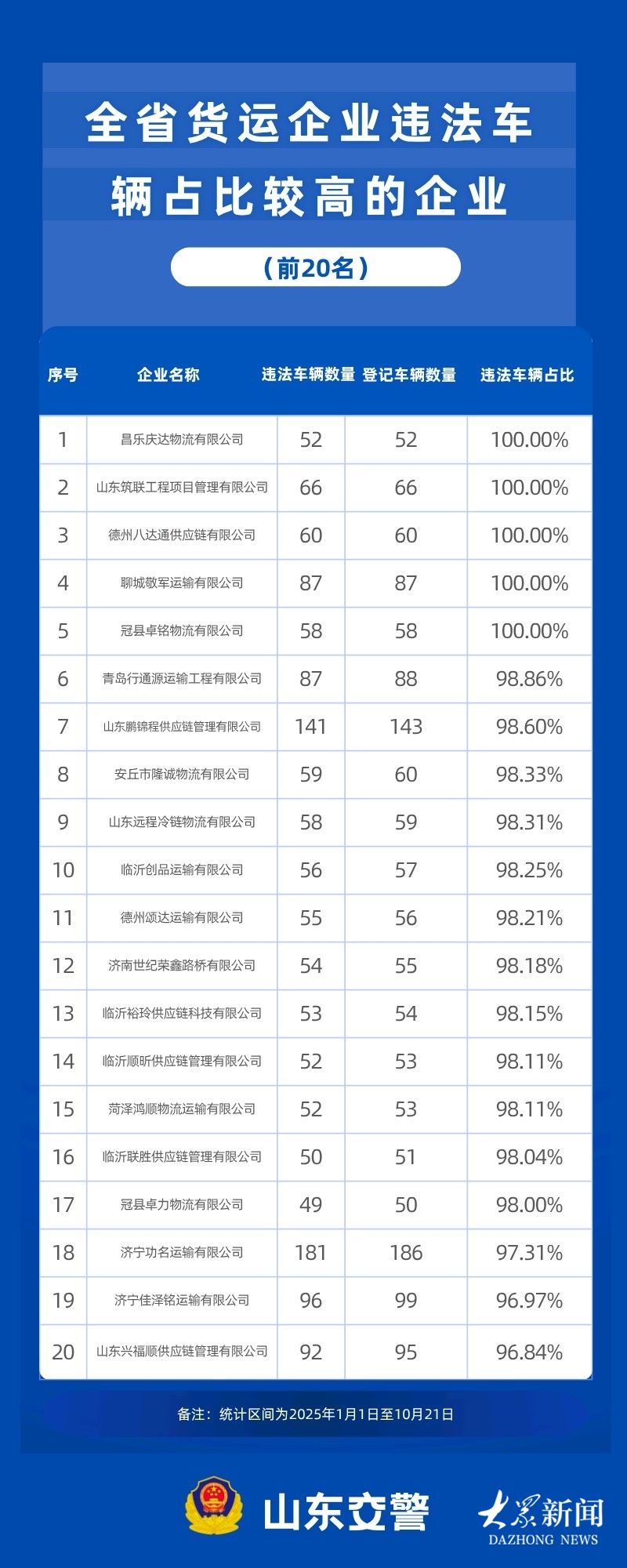近日山东发布2025年第十批全省重点违法企业及驾驶人名单以下是详细曝光明细