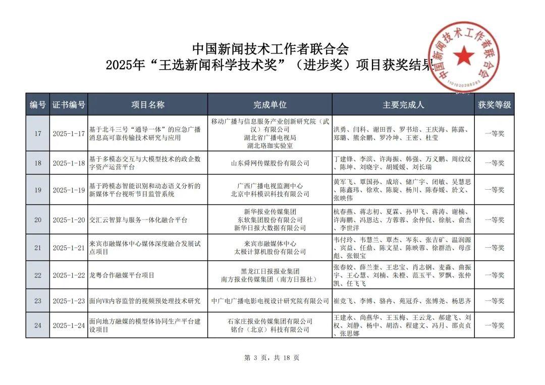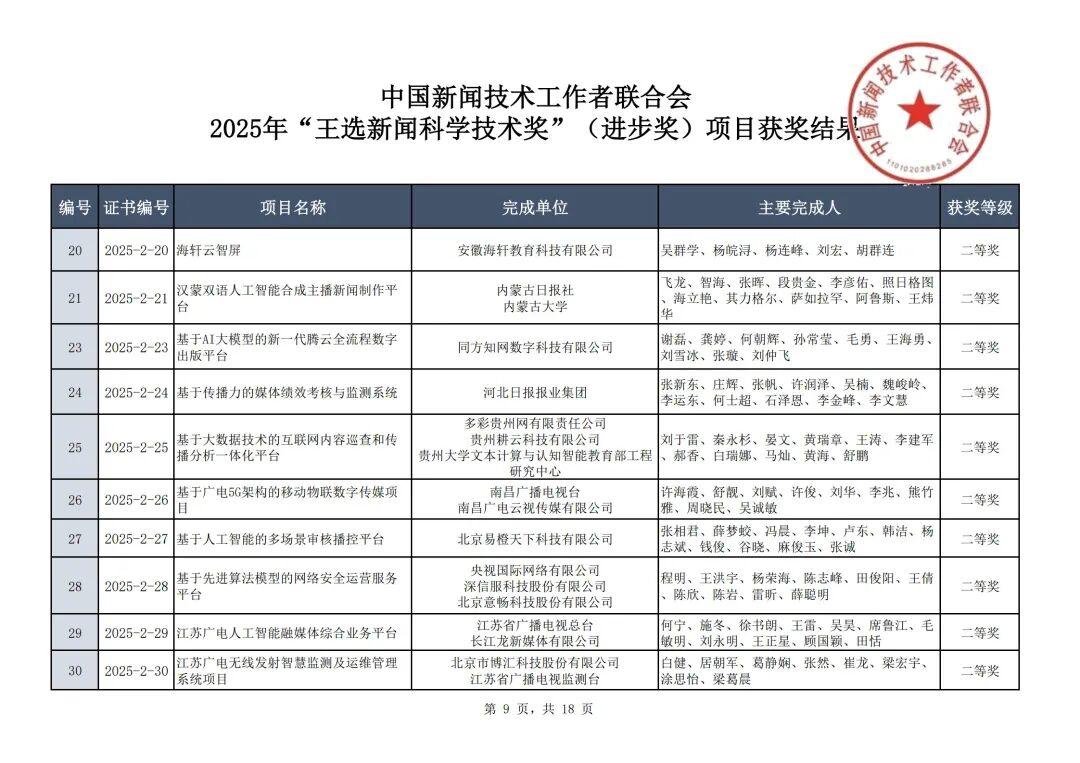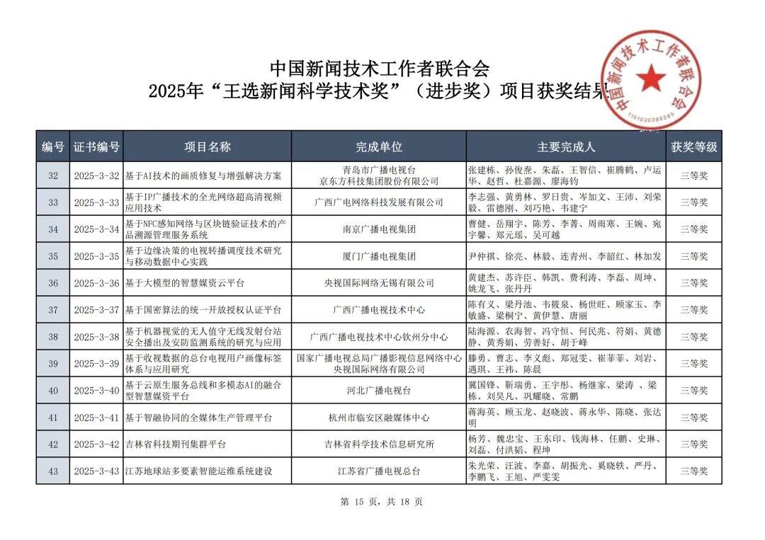 “王选新闻科学技术奖”是经国家科学技术奖励办公室批准设立的我国新闻界唯一跨媒体的科技奖项,也是我国新闻传媒行业最高层次的国家级科技奖项。
