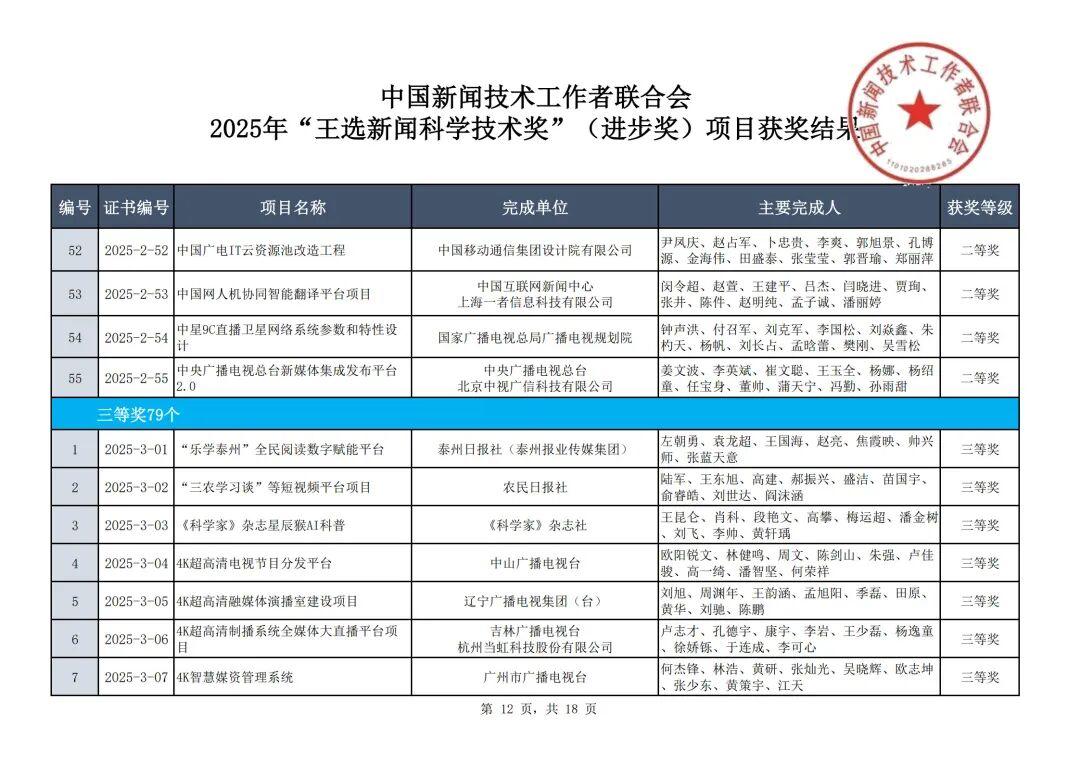本次“王选新闻科学技术奖”共有181项获奖,其中一等奖48项,二等奖54项,三等奖79项。