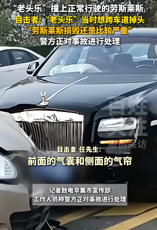 “老头乐”逆行撞上劳斯莱斯致损毁严重,目击者发声