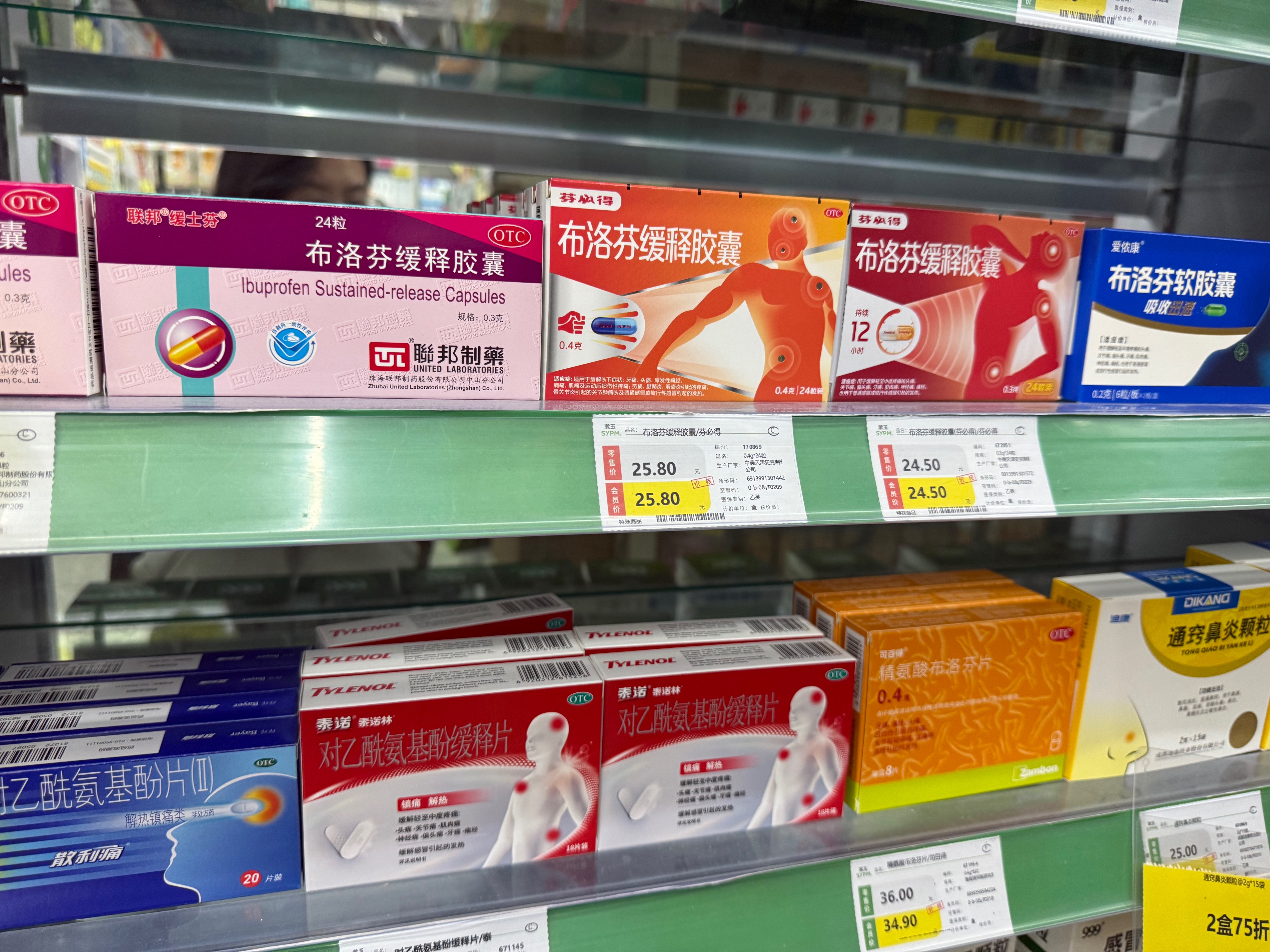 一盒0.3克*24粒装的芬必得布洛芬缓释胶囊(以下简称“布洛芬”),在同一药店,货架上标价24.5元,而在线上平台叠加优惠后,最低仅需19.9 元。