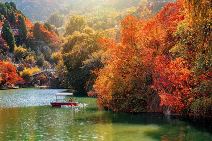 漫山红透!济南红叶谷把秋日色彩玩到了极致