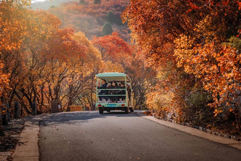 秋日的济南红叶谷,是一场盛大的色彩盛宴。秋风拂过,漫山遍野的黄栌树将山谷装点得绚烂夺目。景区内4000余亩的红叶林,在风中起伏,宛如一片红色的海洋。