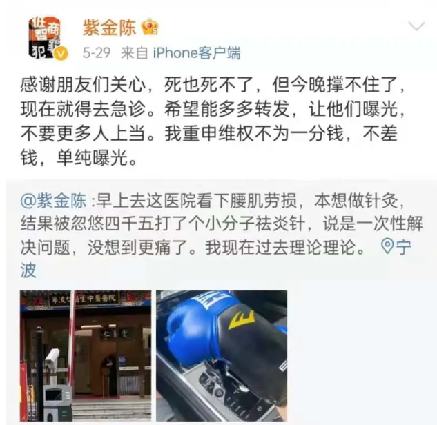 此前,知名悬疑推理小说作家紫金陈也曾为“庸医”所骗,骗子利用的便不是“贪念”,而是对健康的渴求和对所谓专业权威的轻信。据报道,紫金陈为治疗腰肌劳损求医,花4500元打了明星同款“小分子祛炎针”治疗,结果病情不仅不见好转,反而愈加严重。当他公开经历以警示他人时,评论区不乏嘲讽之声,有人吐槽他“幼稚”,认为他毕业于名校,居然如此容易被糊弄。