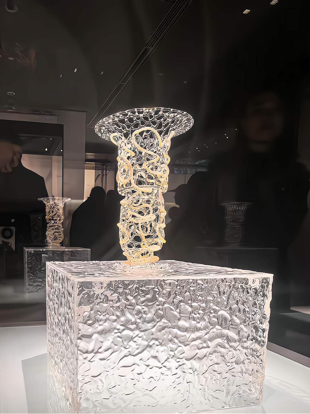 此次入选的四件作品《儒学圣典》《黄河水纹》《泰山彩韵》《齐鲁花冠》,均出自淄博小炉匠琉璃灯工工作室主理人任波之手。淄博琉璃灯工技艺,被誉为“火中雕塑”,需在1200摄氏度高温下精准塑形,传承上千年,唐代起便是宫廷御制工坊的重要技艺。任波在坚守古法工序的同时,融入现代设计理念,将儒家文化、黄河奔腾、泰山雄奇等齐鲁文化符号熔铸于琉璃之中,展现了传统与现代的完美融合。