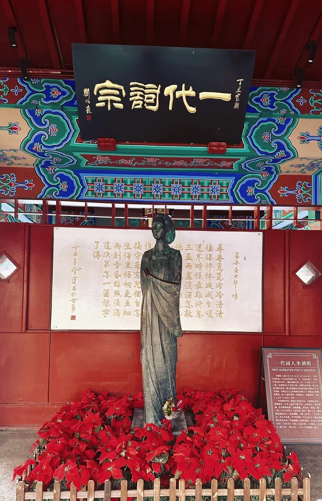 今天,青州范公亭公园内的李清照纪念祠,依傍着顺河楼旧址,悄然立于古城西北,成为后世追寻她诗意人生的重要坐标。祠内景致依循其青州岁月的印记铺陈,重现了“归来堂”与“易安室”的素雅格局,以一砖一瓦、一草一木,延续着青州岁月里那份融于金石茶香的诗意与深情,让往来者犹可窥见“一代词宗”于烛影茶烟间挥毫泼墨的翩然风姿。