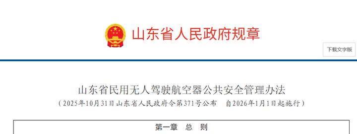 为规范并加强民用无人驾驶航空器的公共安全管理,促进低空经济高质量发展,《山东省民用无人驾驶航空器公共安全管理办法》(以下简称《办法》)已于近日正式公布,将自2026年1月1日起施行。这是山东省针对无人机公共安全管理出台的专项政府规章,为全省无人机的生产、销售与使用活动划定了清晰的安全红线。