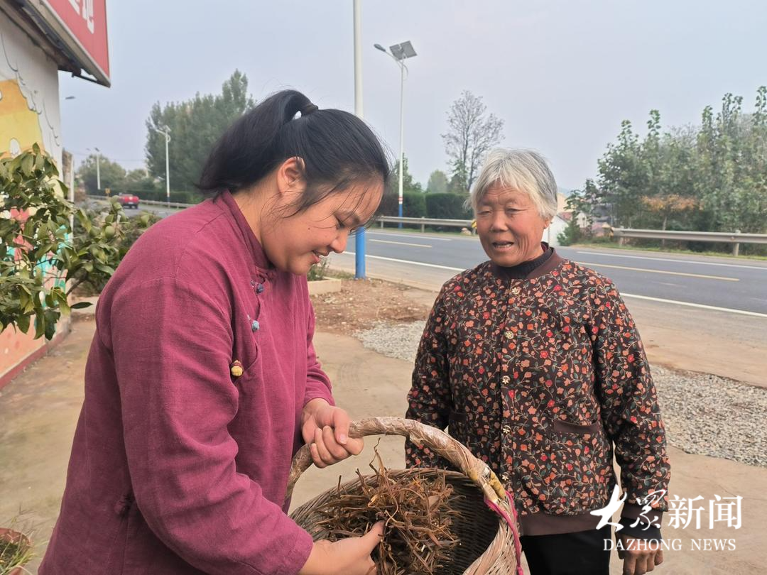 老人也愿意把自家的农产品卖给工作室。10月31日,夏蔚镇上蔚村村民张纪英推着两袋芋头和一篮子黄花菜来到了工作室:“她这里给的价高,我推来给她看看,行的话明天再送更多来。”