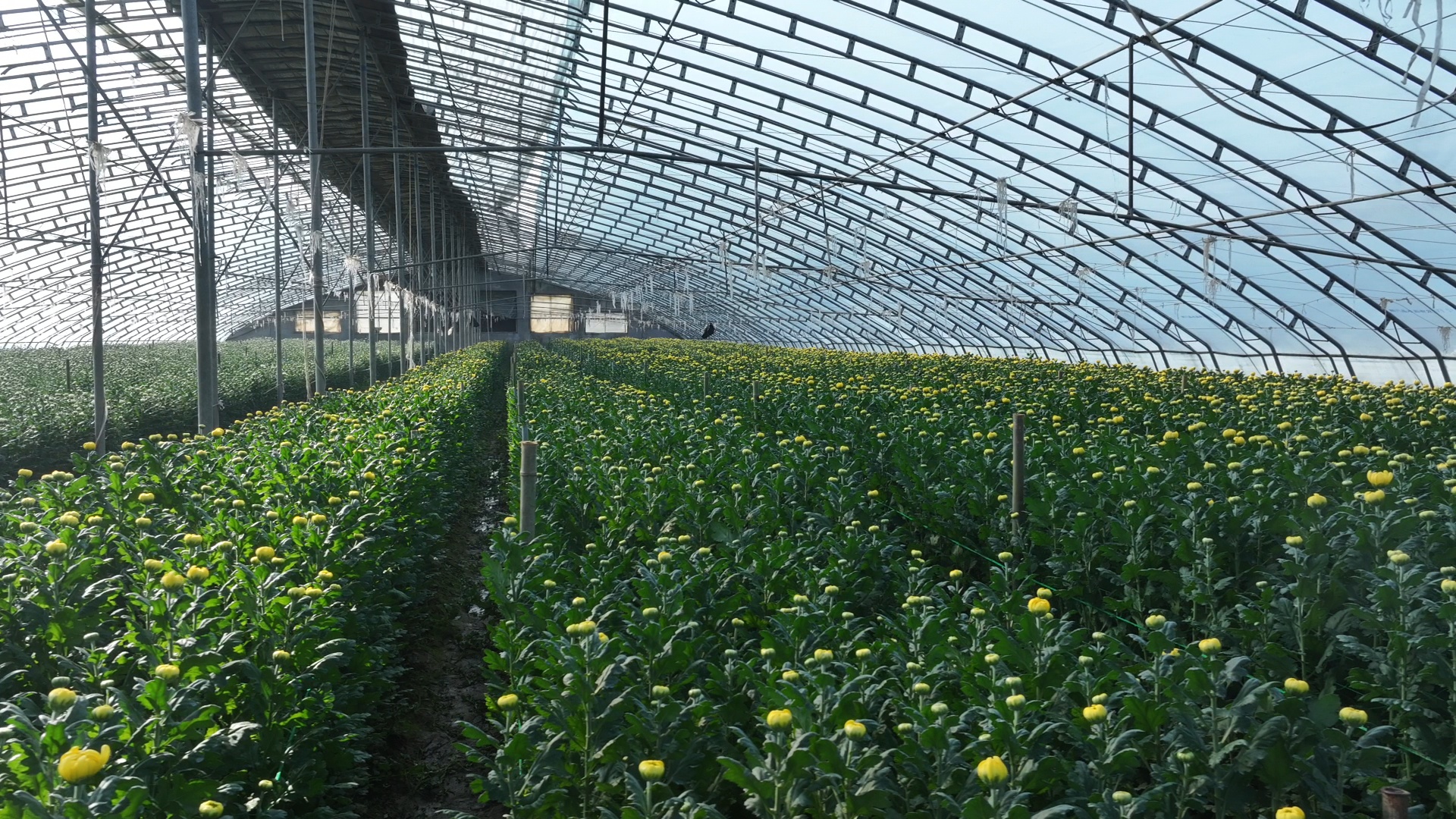 “在长到六七十公分的时候,为了得到更优秀的花,需要进行人工干预,把品质做到再优。大概停止补光20天之后,花芽就开始现蕾了,现蕾之后就找工人进行抹蕾。在菊花种植当中,抹蕾是一项巨大的工程,需要人工一个一个给抹掉,抹完之后,静待花开就可以了。”天骥生态农场技术员刘艳飞说。