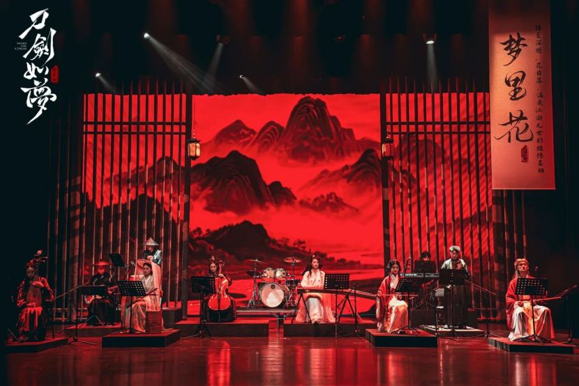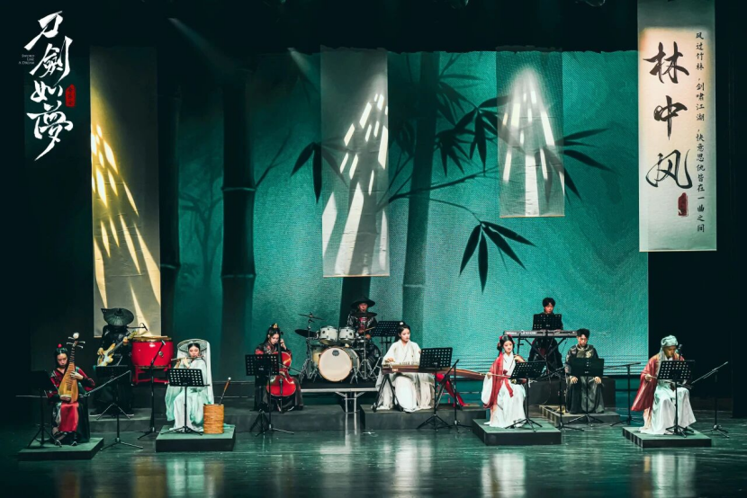 音乐会打破传统演艺边界,以“民乐轻摇滚”解锁国风新体验。“林中风”“梦里花”等四个篇章搭配沉浸式舞美,带你沉浸式闯入刀光剑影与山河壮阔的武侠世界。