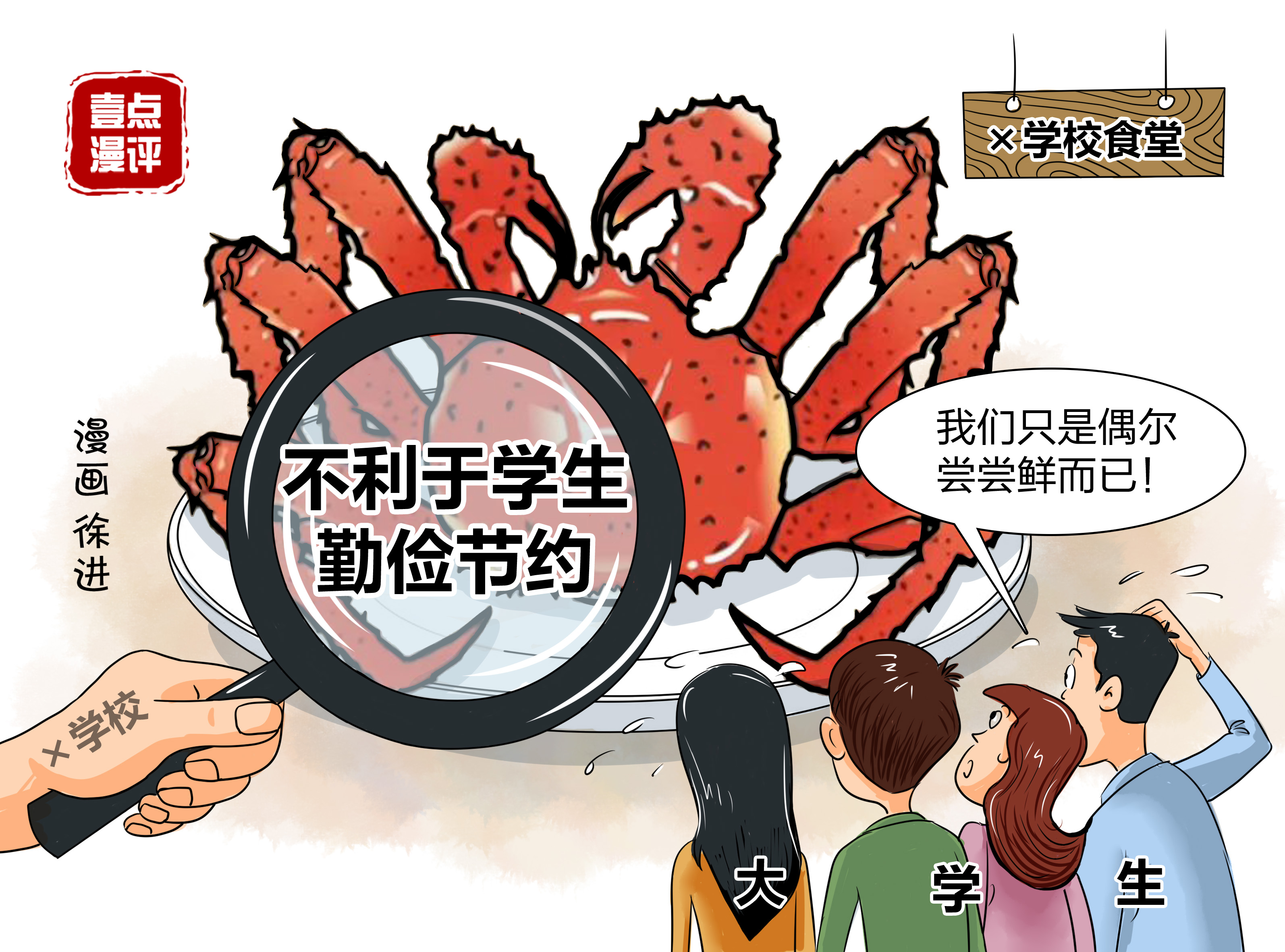 此外,在近年来一些备受关注的舆论事件中,也常出现一有人反对就“休克”处理的现象,某些情况下的过度围观、放大会使得创新空间进一步被削减。在此次讨论中,我们也看到,当面对“勤俭节约”四个字,有人唯有拿出“消费是经济发展动力”这种宏大价值才能获得平等对话空间。但当我们上升到价值“对话”时,不妨多俯下身去听听学生们的真实反响;也不妨多一份松弛,给学子们多一些信任、多一些自我成长的空间。毕竟相比下架帝王蟹,让更多人在成长中拥有面对“帝王蟹”的正确心态,才是根本。