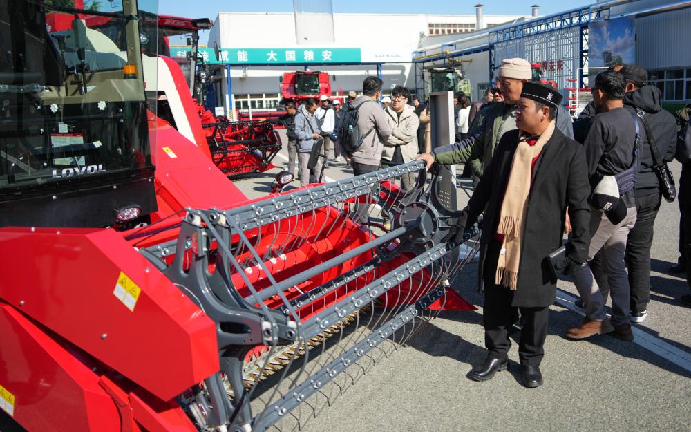 11月3日,印度尼西亚农村干部研修班学员在潍柴雷沃智慧农业有限公司参观。新华社记者 徐速绘 摄