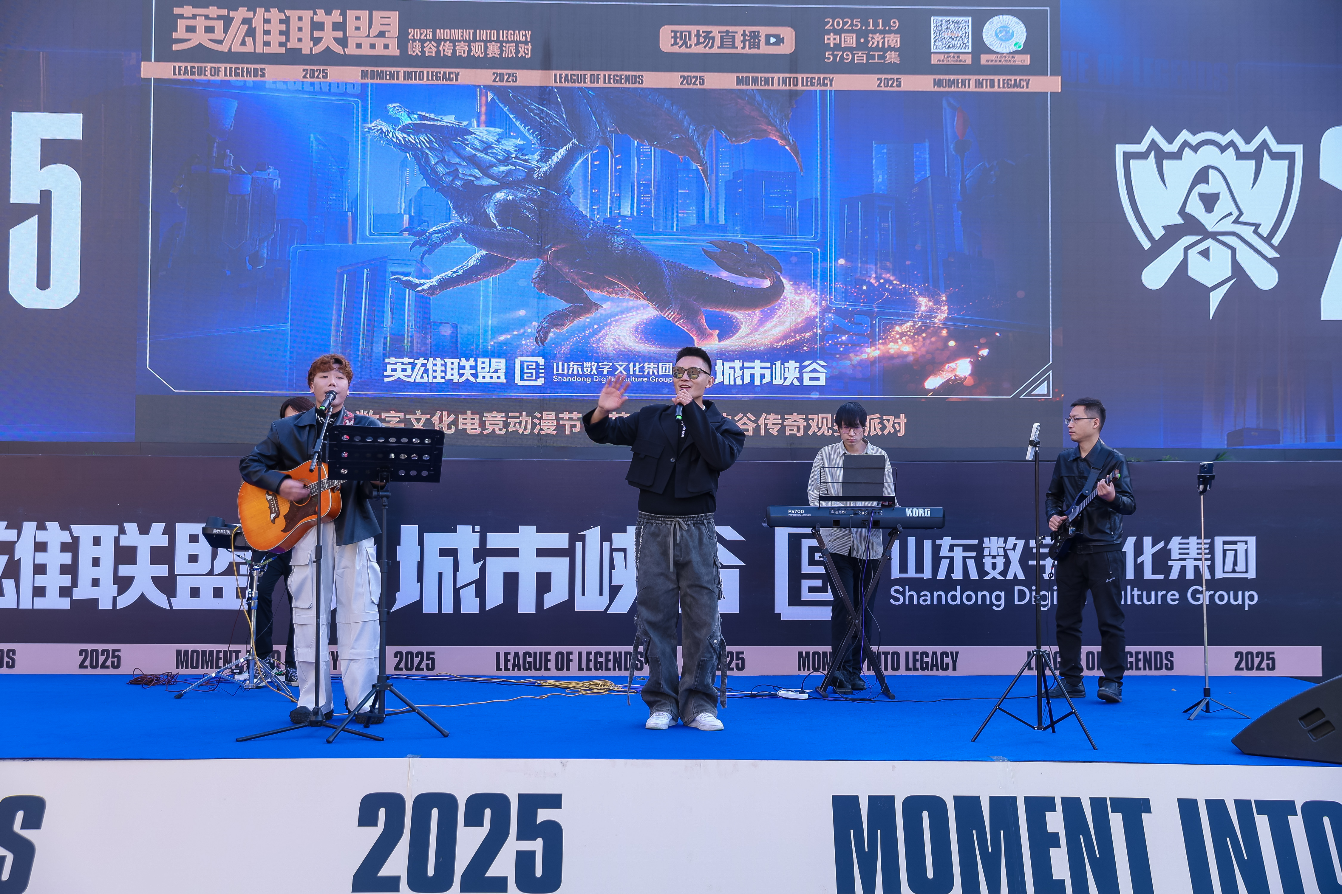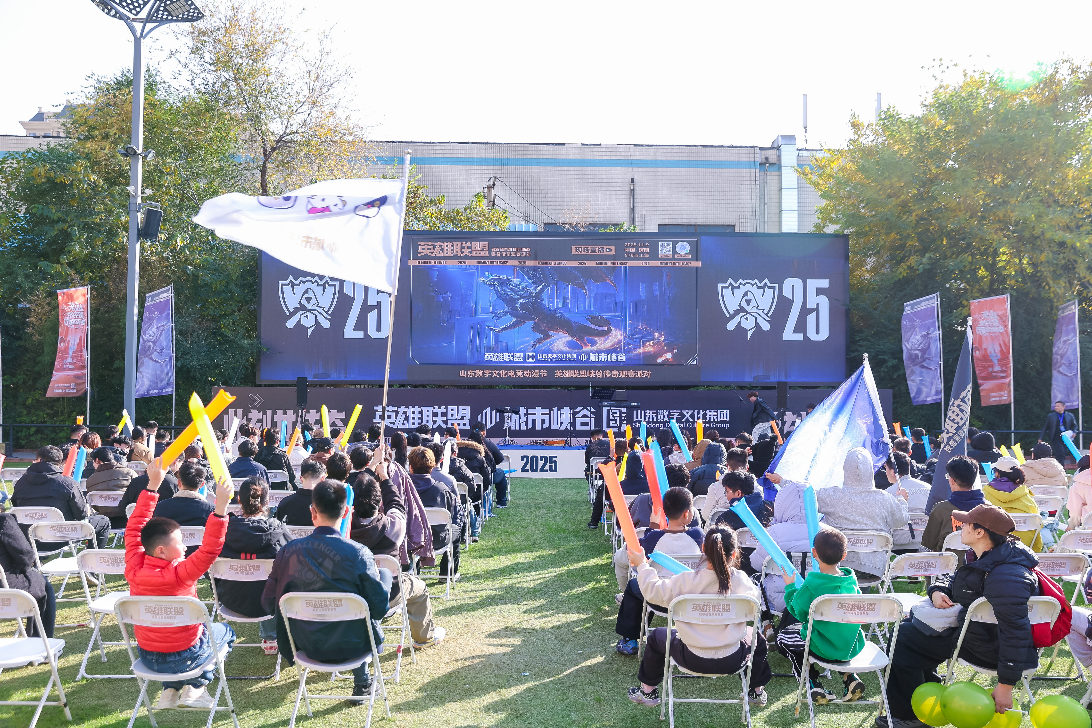 “爱你孤身走暗巷,爱你不跪的模样……”随着一首耳熟能详的英雄联盟主题曲《孤勇者》唱响,11月9日下午,由山东数字文化集团携手腾讯联合打造的首届山东数字文化电竞动漫节暨英雄联盟峡谷传奇观赛派对在济南579百工集酒神广场高能启幕。
