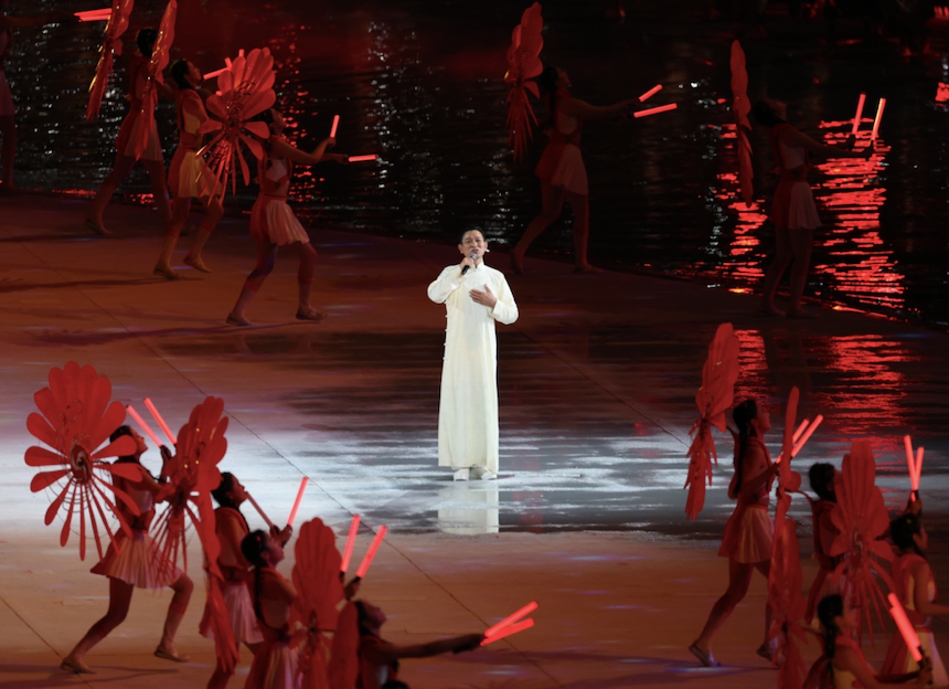 开幕式文体展演的最后一首歌,巨星刘德华,压轴出场,高唱一首《中国人》,引发现场所有观众齐声合唱,将现场气氛推向最高潮……
