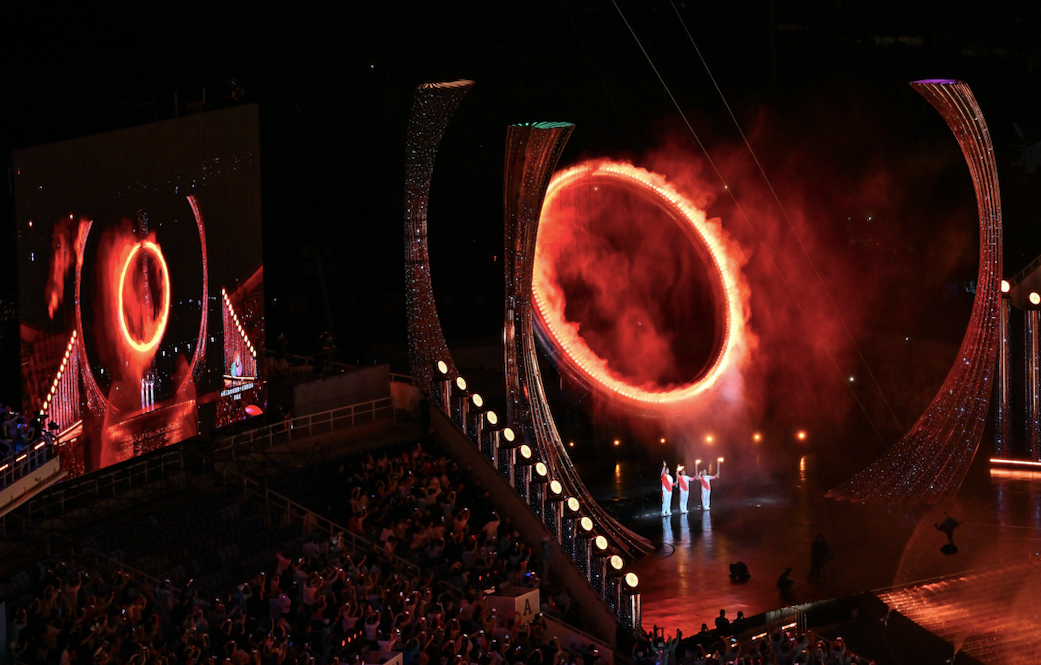 这个开合有度,寓意三地同心的点火仪式,新颖而又别致,仪式一结束,坐在我一旁的一位媒体同行脱口而出,给予了好评和夸赞。