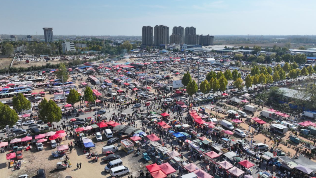 日头逐渐升高,停车场里,挂着“苏G”“苏C”车牌的车辆随处可见。在集市西南角,两辆来自宿迁的旅游大巴已经停在路边。“规模大,东西品种全,距离也不远,当天就能来回。”跟随游客在集市上走了走,旅行社负责人孙红便决定将大集设为旅行线路。